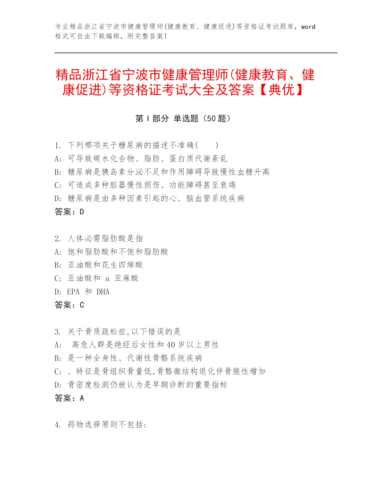 精品浙江省宁波市健康管理师(健康教育、健康促进)等资格证考试大全及答案【典优】.docx