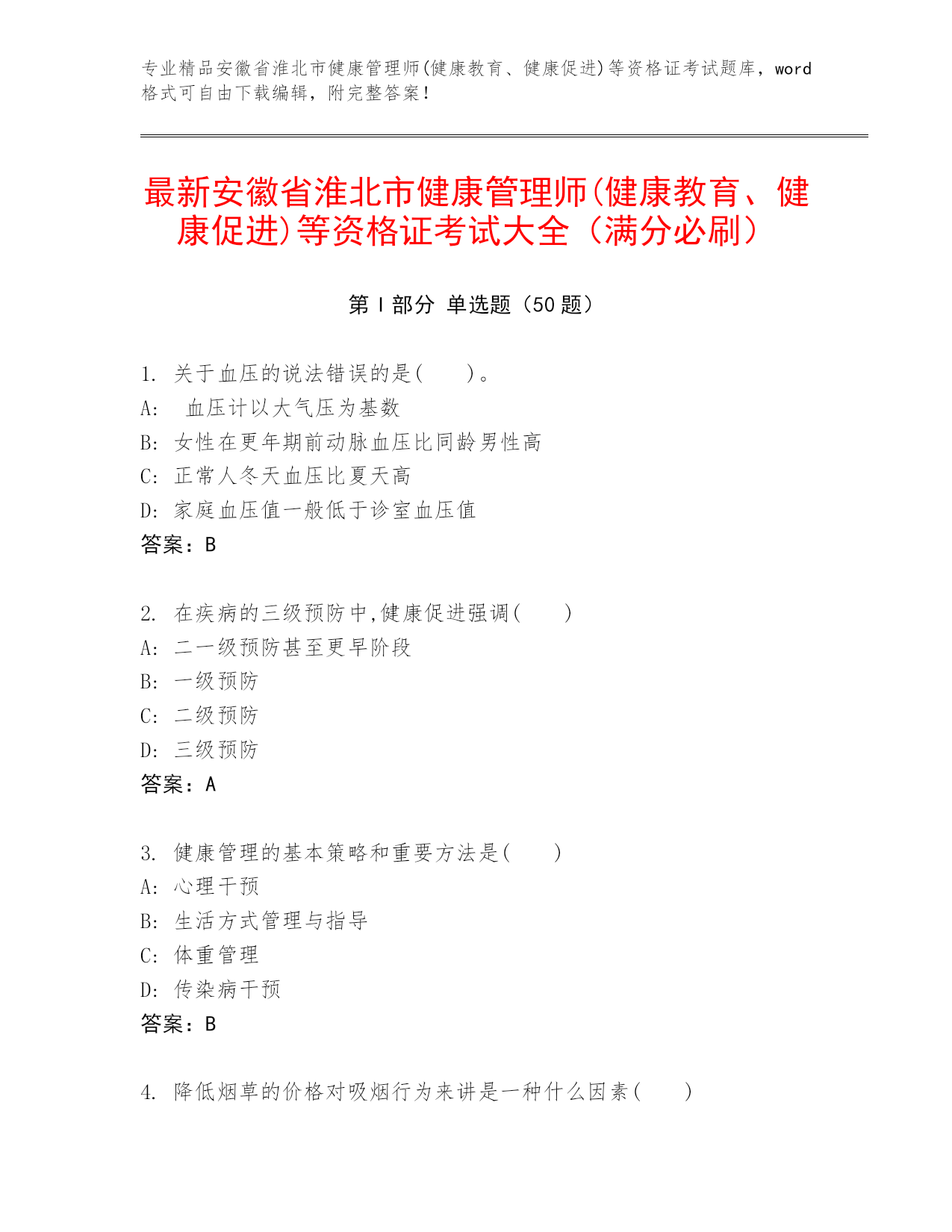 最新安徽省淮北市健康管理师(健康教育、健康促进)等资格证考试大全(满分必刷).docx