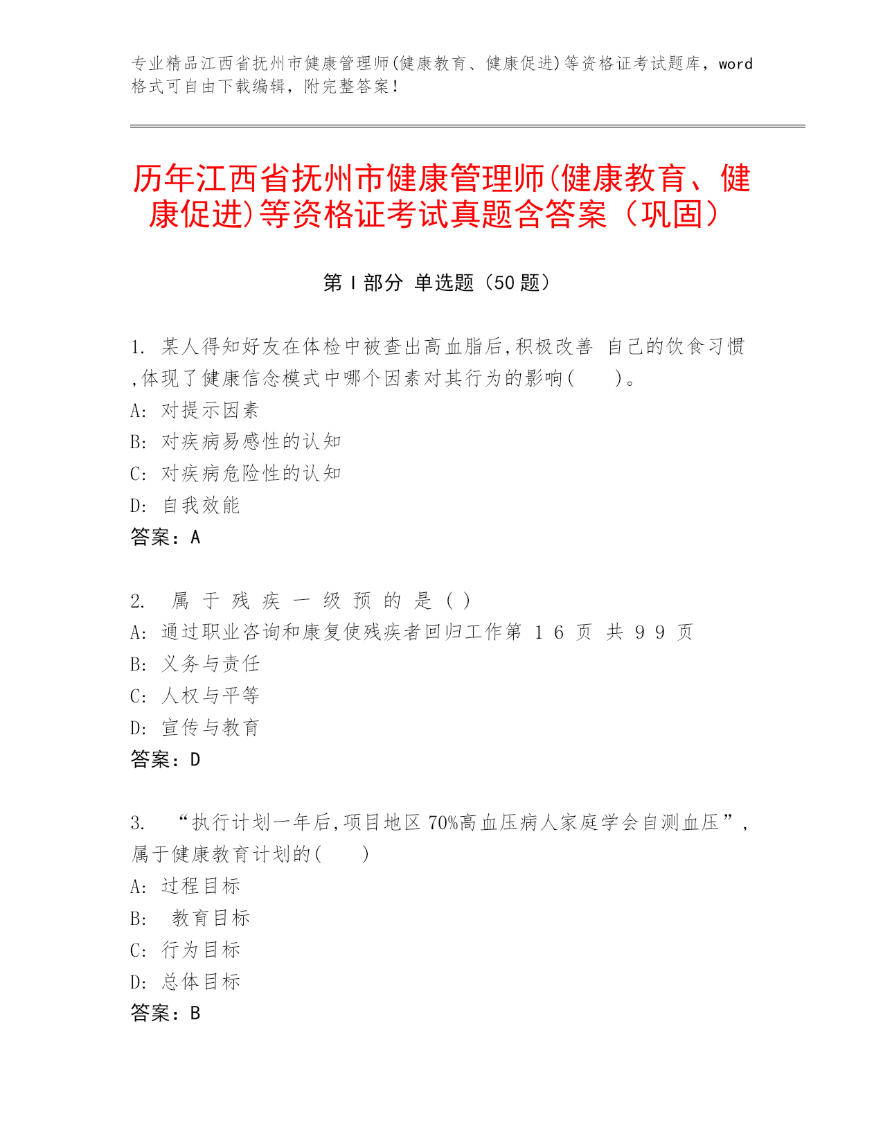 历年江西省抚州市健康管理师(健康教育、健康促进)等资格证考试真题含答案(巩固).docx