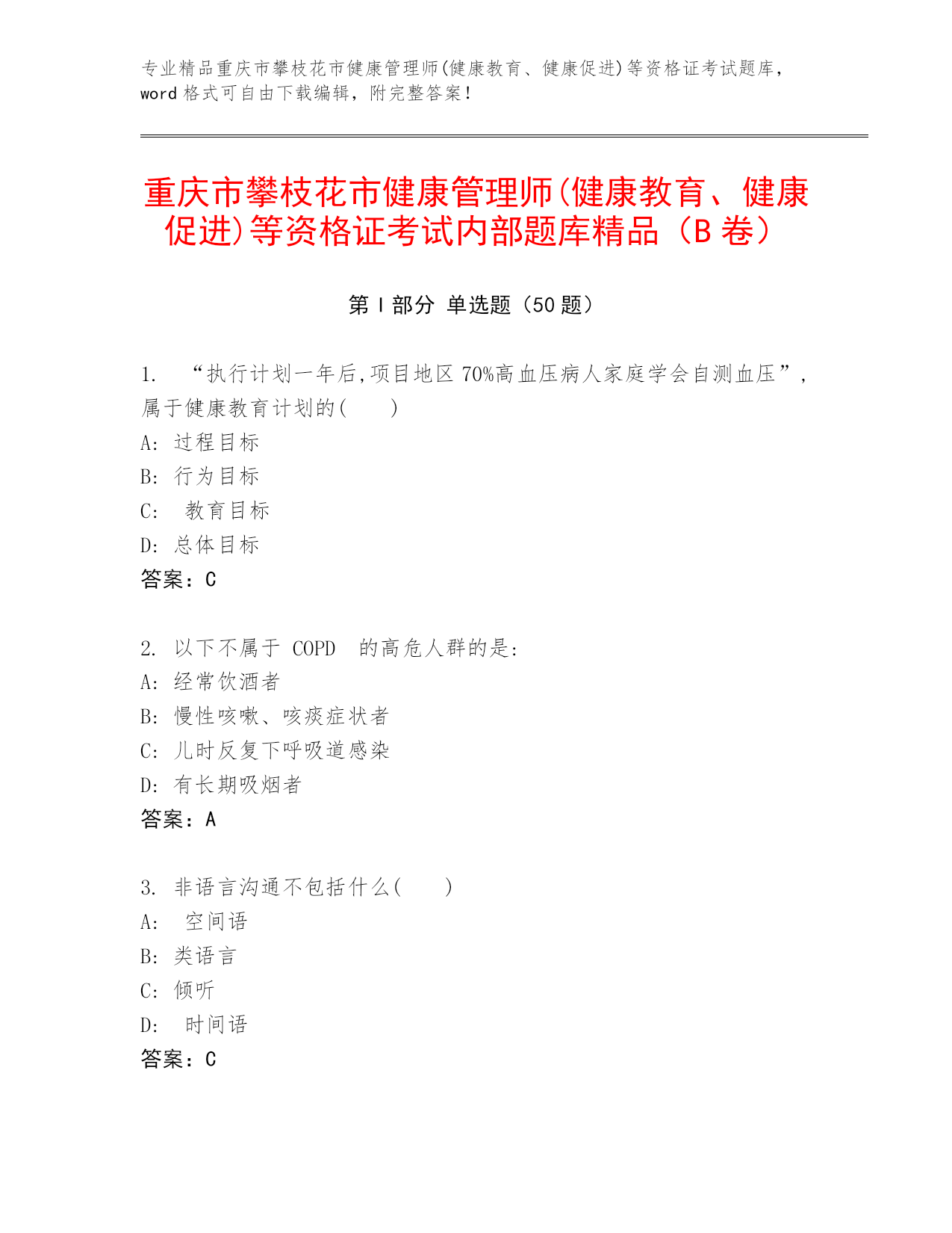 重庆市攀枝花市健康管理师(健康教育、健康促进)等资格证考试内部题库精品(B卷).docx