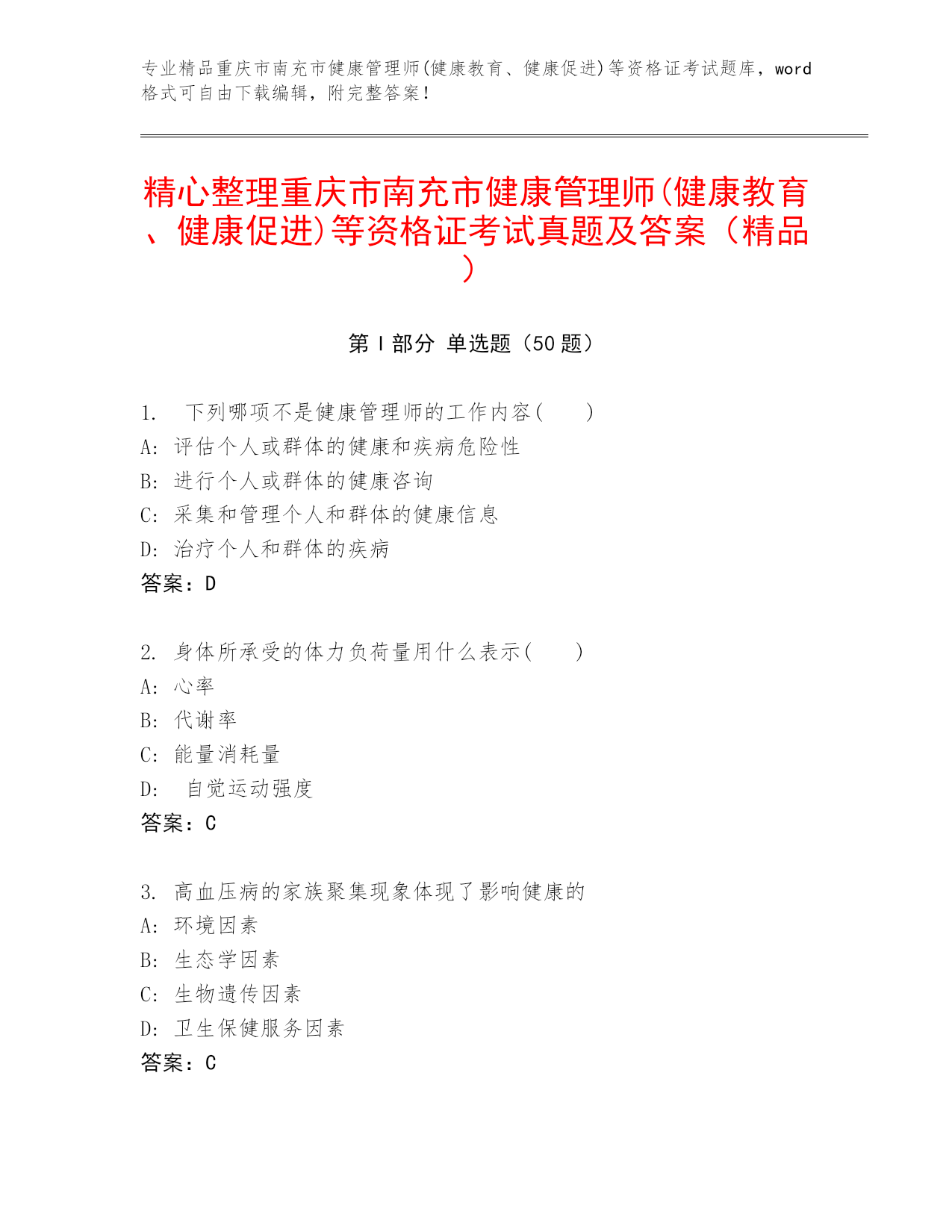 精心整理重庆市南充市健康管理师(健康教育、健康促进)等资格证考试真题及答案(精品).docx