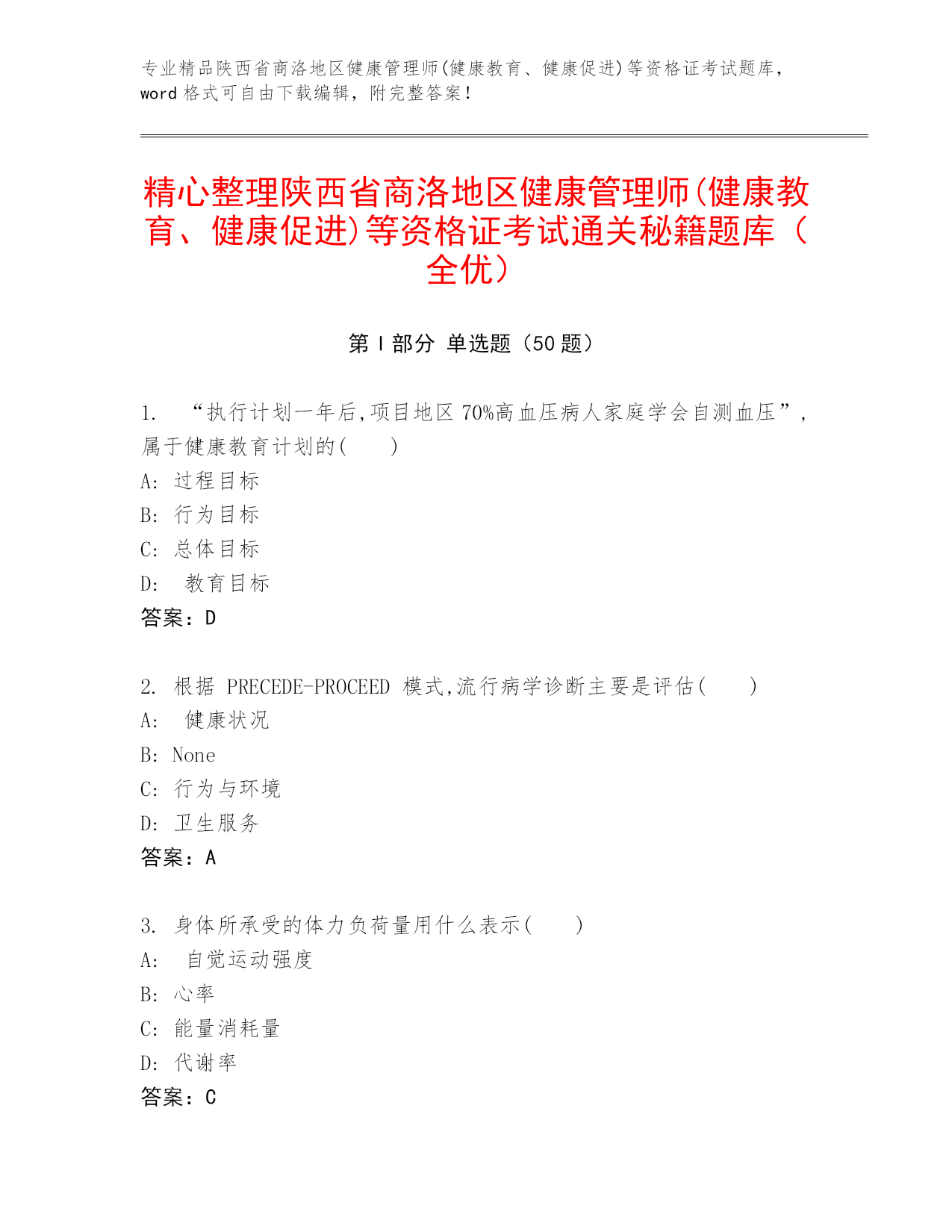 精心整理陕西省商洛地区健康管理师(健康教育、健康促进)等资格证考试通关秘籍题库(全优).docx