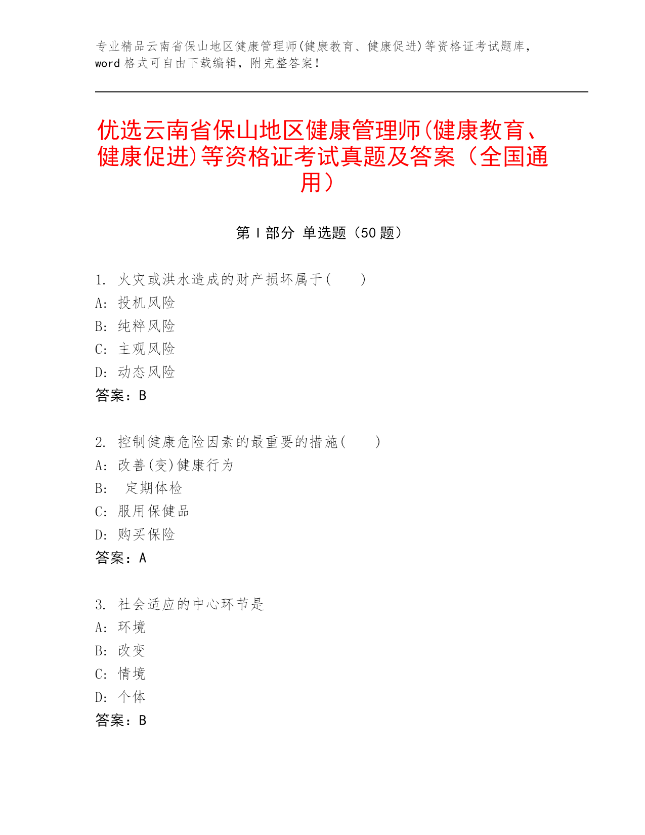 优选云南省保山地区健康管理师(健康教育、健康促进)等资格证考试真题及答案(全国通用).docx