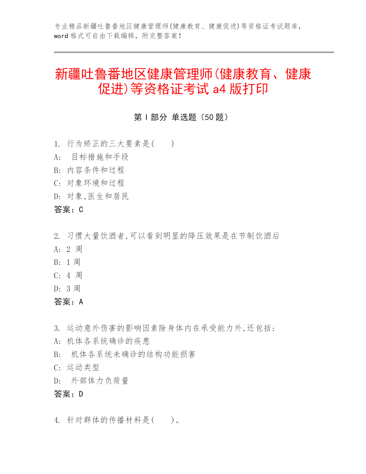 新疆吐鲁番地区健康管理师(健康教育、健康促进)等资格证考试a4版打印.docx