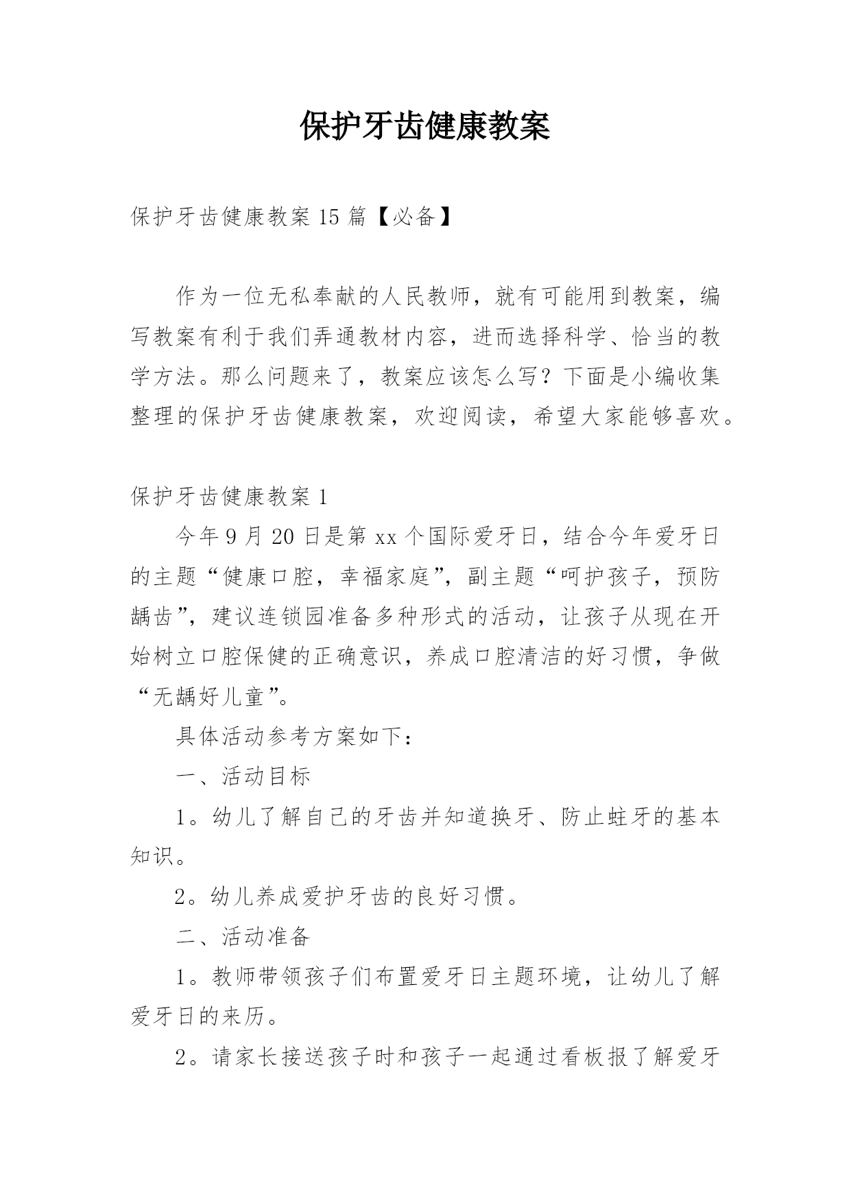 保护牙齿健康教案保护牙齿健康教案15篇【必备】作为一位无私奉献的人民教师,就有可能用到教案,编写教案有利于我们弄通教材内容,进而选择科学、恰当的教学方法。那么问题来了,教案应该怎么写?下面是小编收集整理的保护牙齿健康教案,欢迎阅读,希望大家能够喜欢。保护牙齿健康教案1今年9月20日是第xx个国际爱牙日,结合今年爱牙日的主题“健康口腔,幸福家庭”,副主题“呵护孩子,预防龋齿”,建议连锁园准备多种形式的活动,让孩子从现在开始树立口腔保健的正确意识,养成口腔清洁的好习惯,争做“无龋好儿童”。具体活动参考方案如下