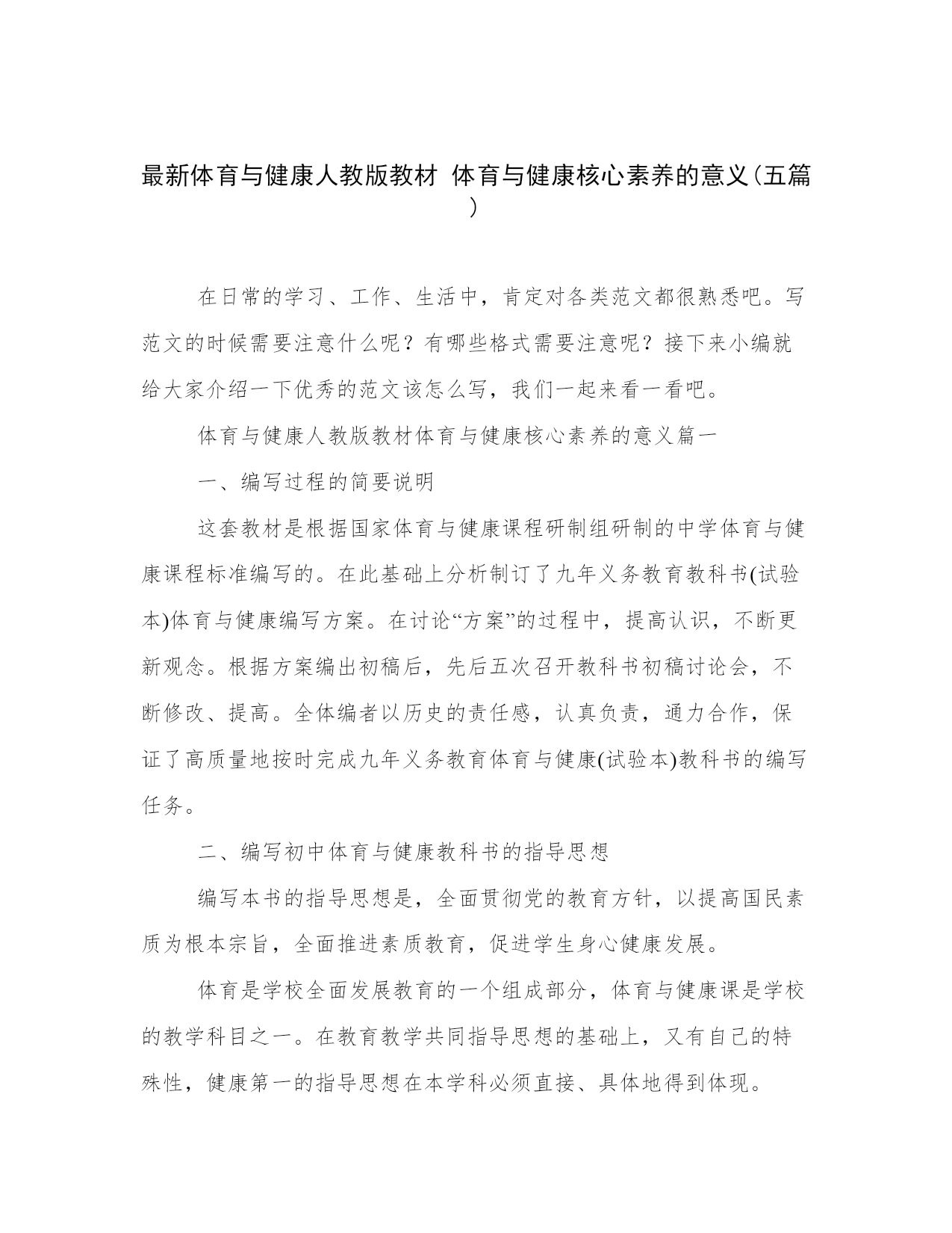最新体育与健康人教版教材 体育与健康核心素养的意义(五篇).docx