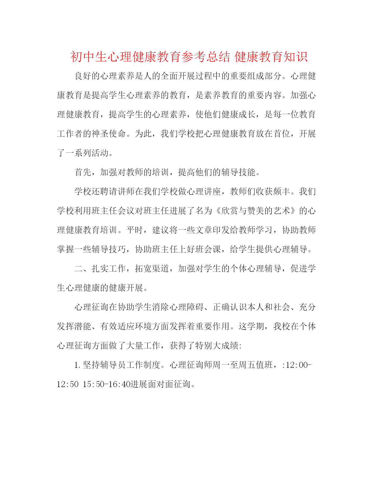 2022初中生心理健康教育参考总结健康教育知识.docx