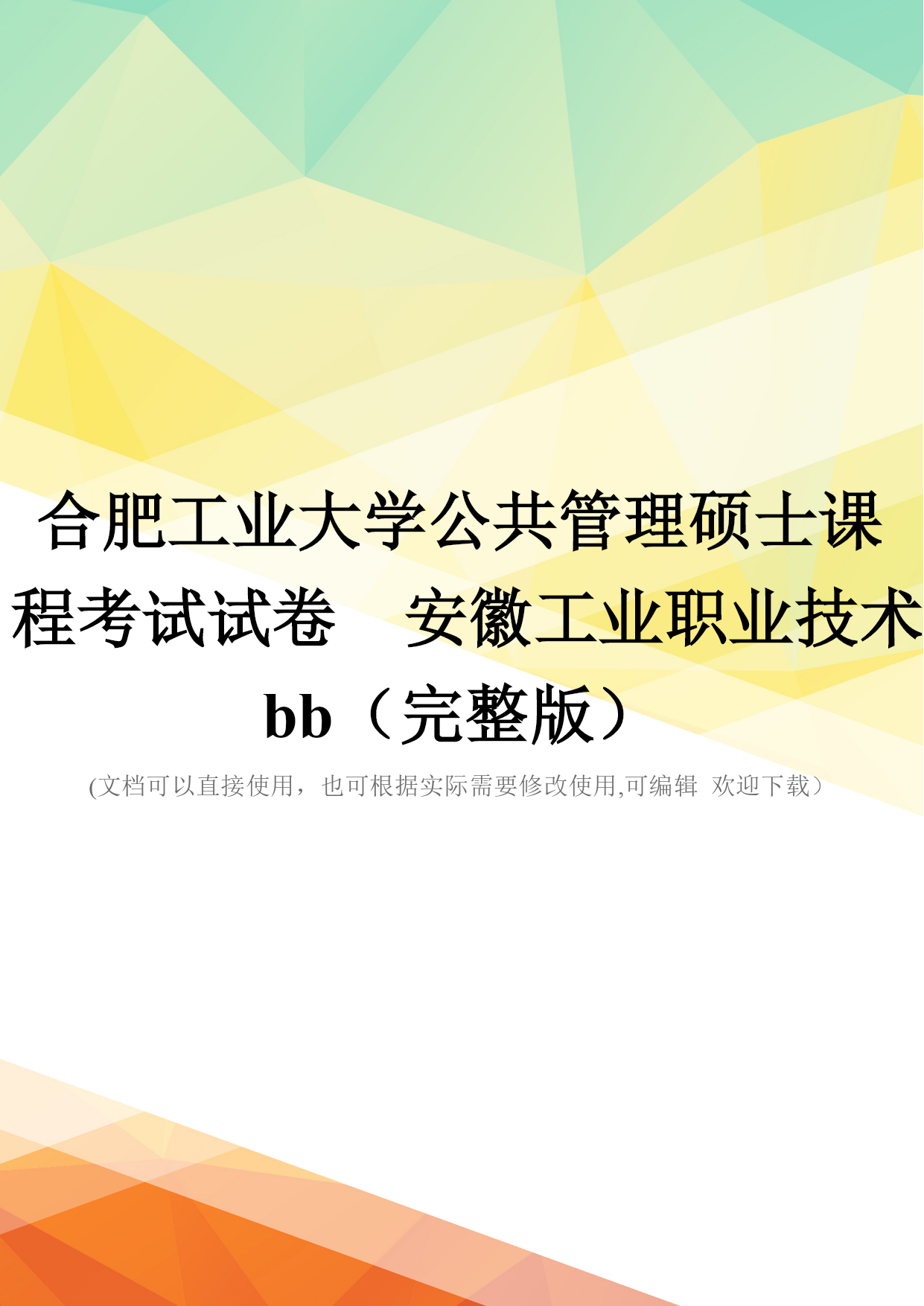 合肥工业大学公共管理硕士课程考试试卷--安徽工业职业技术-bb.doc