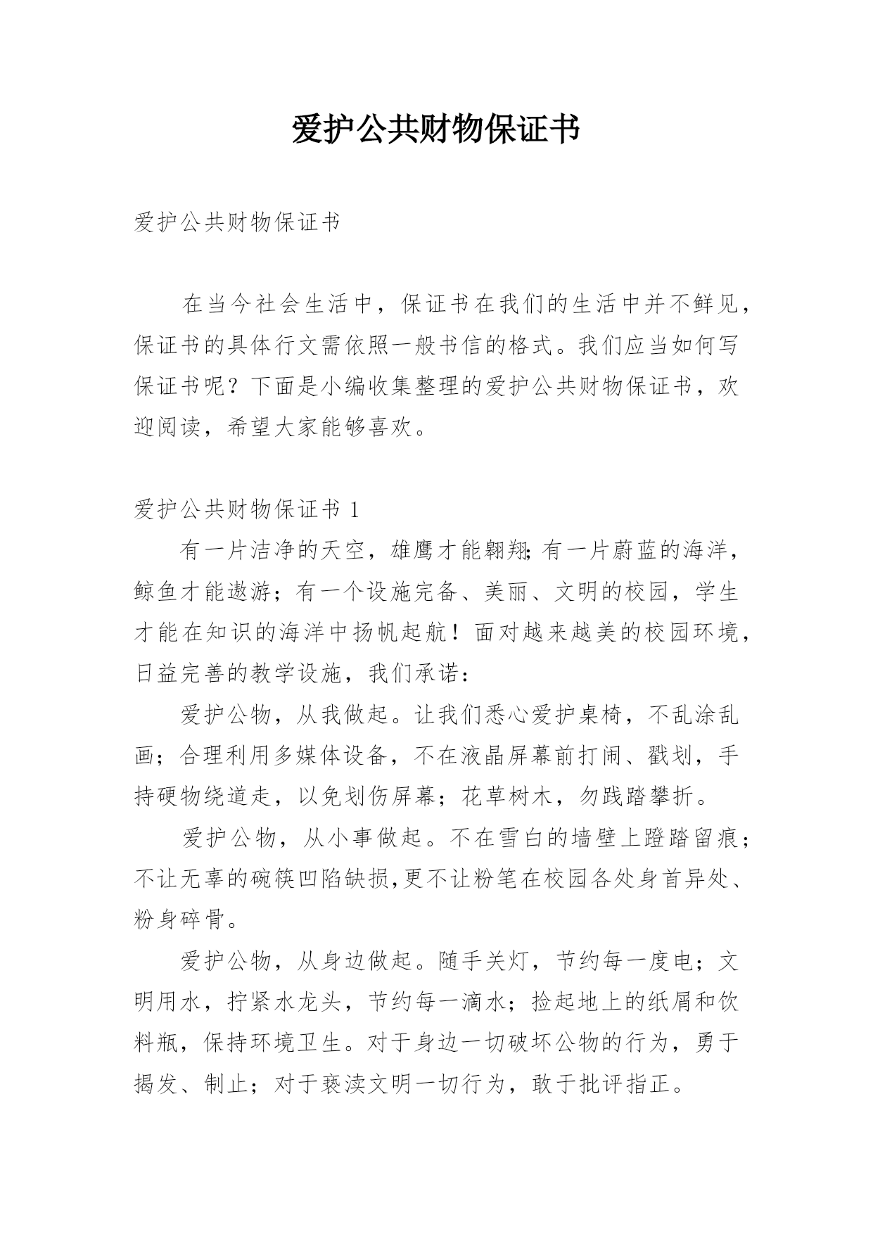 爱护公共财物保证书.docx