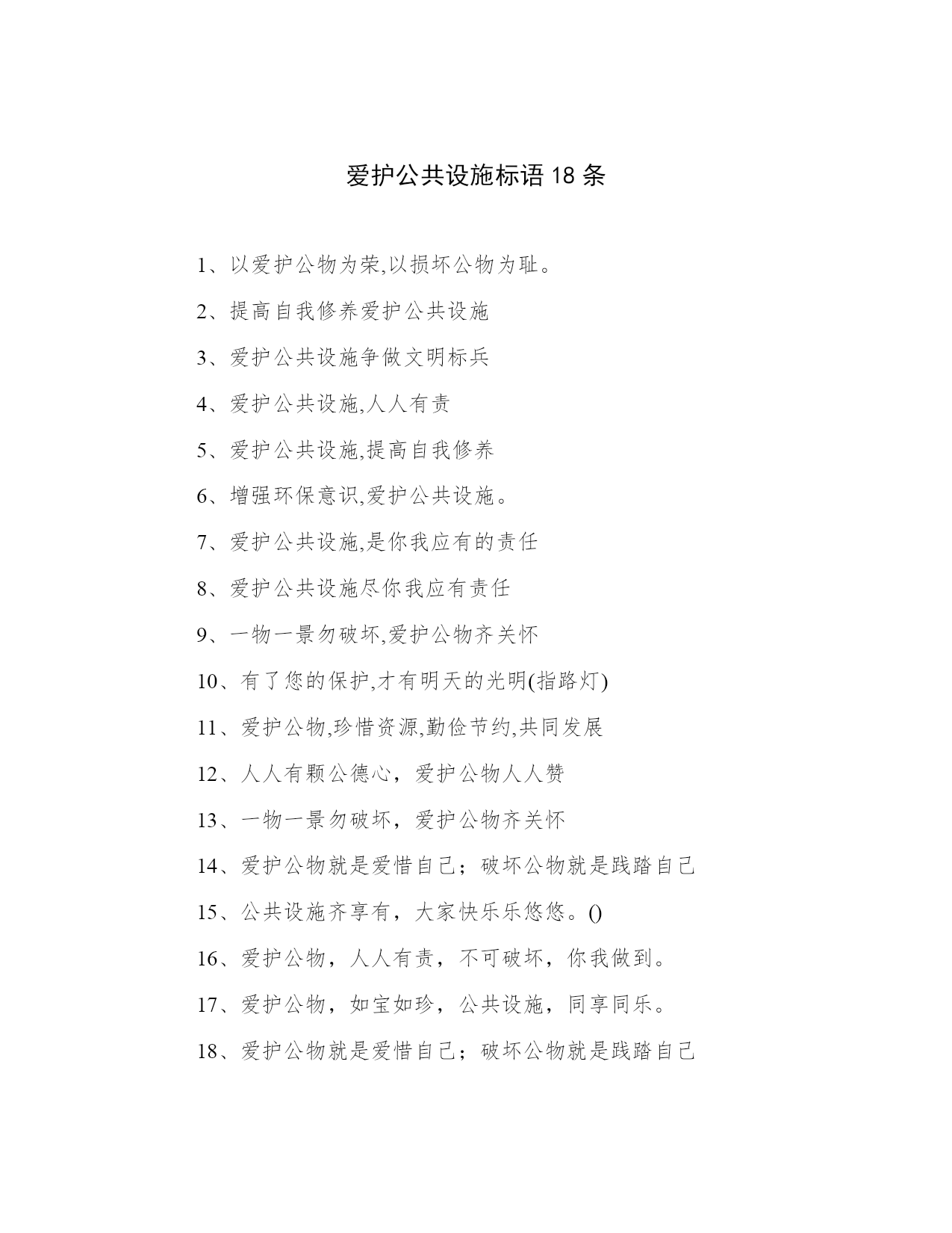 爱护公共设施标语18条.docx