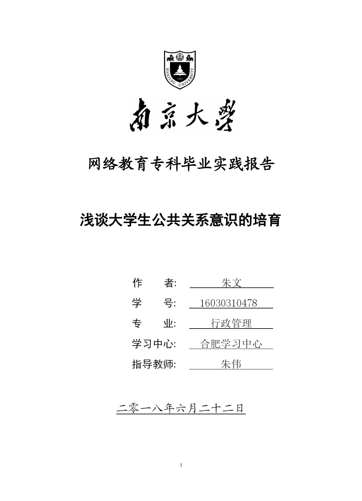 PAGE\*MERGEFORMATIIPAGE\*MERGEFORMATI网络教育专科毕业实践报告浅谈大学生公共关系意识的培育作者:朱文学号:16030310478专业:行政管理学习中心:合肥学习中心指导教师:朱伟二零一八年六月二十二日南京大学网络教育本科毕业论文南京大学网络教育本科毕业论文PAGE\*MERGEFORMATI摘要随着社会化和市场经济的发展,,公共关系意识已构成现代人思想观念体系的核心,社会公共关系素质已成为衡量现代化人才的必要标尺之一。本文简述了公共关系相关理论知识以及
