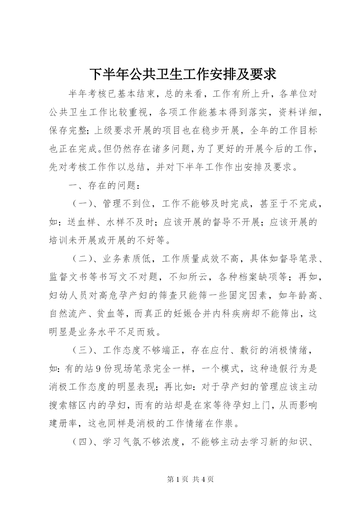 第PAGE\*Arabic\*MERGEFORMAT4页共NUMPAGES\*MERGEFORMAT4页下半年公共卫生工作安排及要求半年考核已基本结束,总的来看,工作有所上升,各单位对公共卫生工作比较重视,各项工作能基本得到落实,资料详细,保存完整;上级要求开展的项目也在稳步开展,全年的工作目标也正在完成。但仍然存在诸多问题,为了更好的开展今后的工作,先对考核工作作以总结,并对下半年工作作出安排及要求。一、存在的问题:(一)、管理不到位,工作不能够及时完成,甚至于不完成,如:送血样、水样不及时