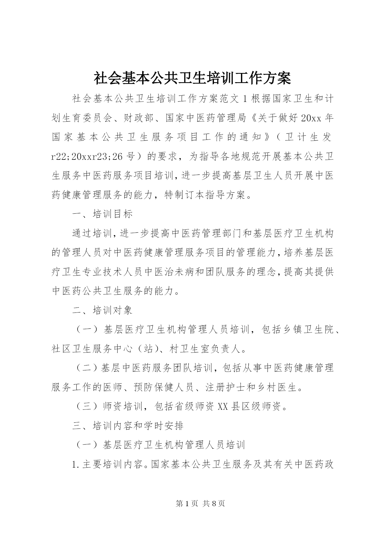 第PAGE\*Arabic\*MERGEFORMAT8页共NUMPAGES\*MERGEFORMAT8页社会基本公共卫生培训工作方案社会基本公共卫生培训工作方案范文1根据国家卫生和计划生育委员会、财政部、国家中医药管理局《关于做好20xx年国家基本公共卫生服务项目工作的通知》(卫计生发r22;20xxr23;26号)的要求,为指导各地规范开展基本公共卫生服务中医药服务项目培训,进一步提高基层卫生人员开展中医药健康管理服务的能力,特制订本指导方案。一、培训目标通过培训,进一步提高中医药管理部门和