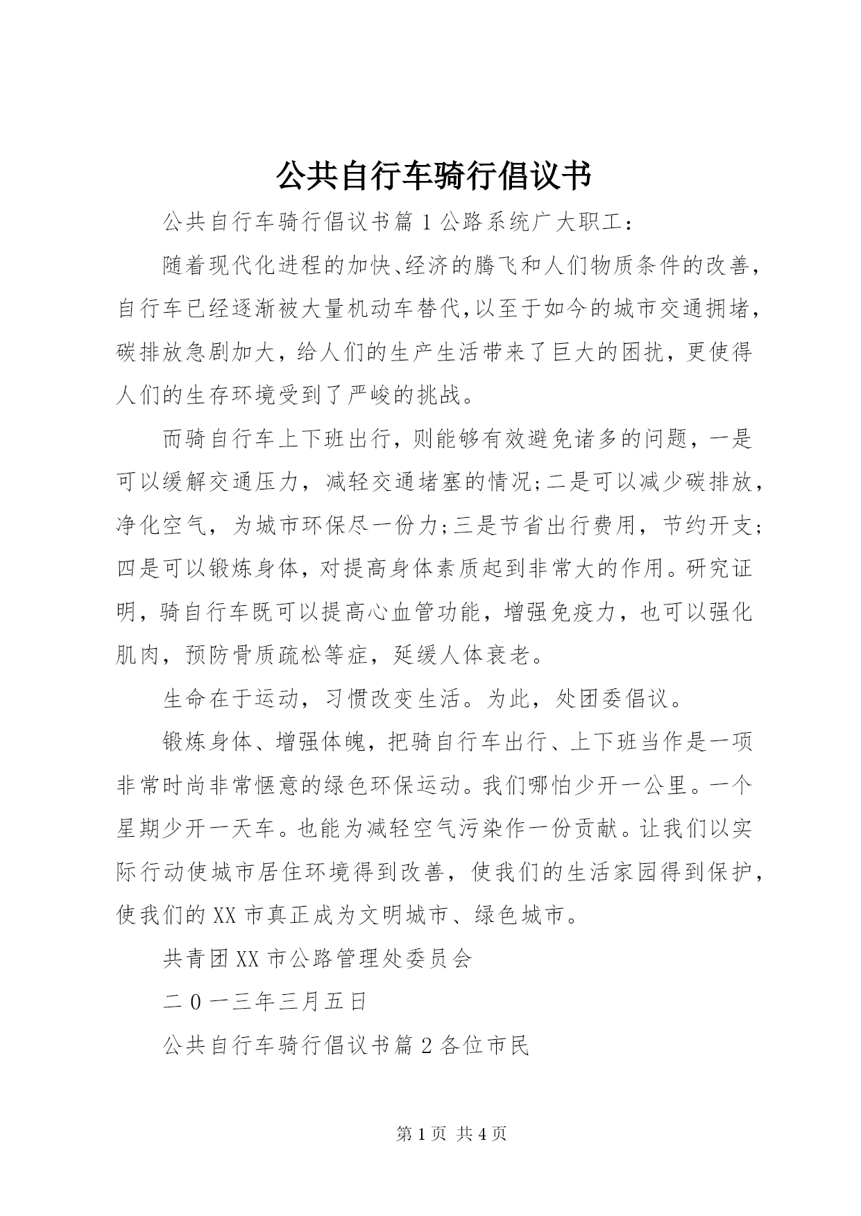 第PAGE\*Arabic\*MERGEFORMAT4页共NUMPAGES\*MERGEFORMAT4页公共自行车骑行倡议书公共自行车骑行倡议书篇1公路系统广大职工:随着现代化进程的加快、经济的腾飞和人们物质条件的改善,自行车已经逐渐被大量机动车替代,以至于如今的城市交通拥堵,碳排放急剧加大,给人们的生产生活带来了巨大的困扰,更使得人们的生存环境受到了严峻的挑战。而骑自行车上下班出行,则能够有效避免诸多的问题,一是可以缓解交通压力,减轻交通堵塞的情况;二是可以减少碳排放,净化空气,为城市环保尽