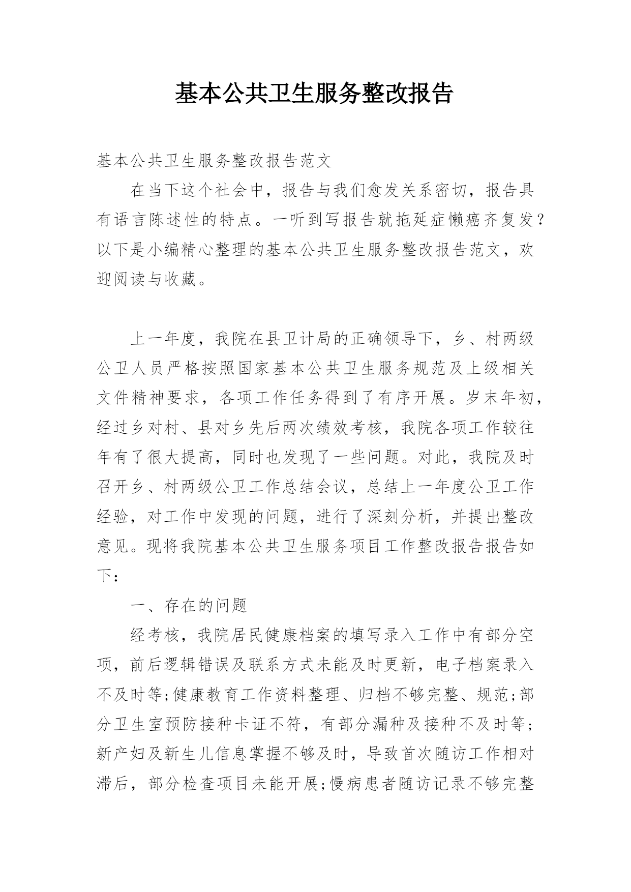 基本公共卫生服务整改报告基本公共卫生服务整改报告范文在当下这个社会中,报告与我们愈发关系密切,报告具有语言陈述性的特点。一听到写报告就拖延症懒癌齐复发?以下是小编精心整理的基本公共卫生服务整改报告范文,欢迎阅读与收藏。上一年度,我院在县卫计局的正确领导下,乡、村两级公卫人员严格按照国家基本公共卫生服务规范及上级相关文件精神要求,各项工作任务得到了有序开展。岁末年初,经过乡对村、县对乡先后两次绩效考核,我院各项工作较往年有了很大提高,同时也发现了一些问题。对此,我院及时召开乡、村两级公卫工作总结会议,总结上