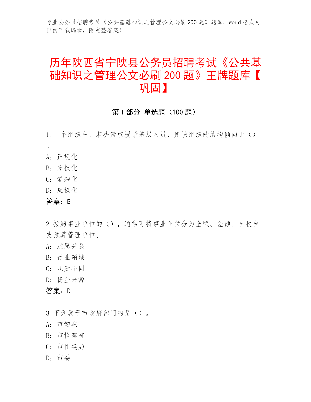 历年陕西省宁陕县公务员招聘考试《公共基础知识之管理公文必刷200题》王牌题库【巩固】.docx