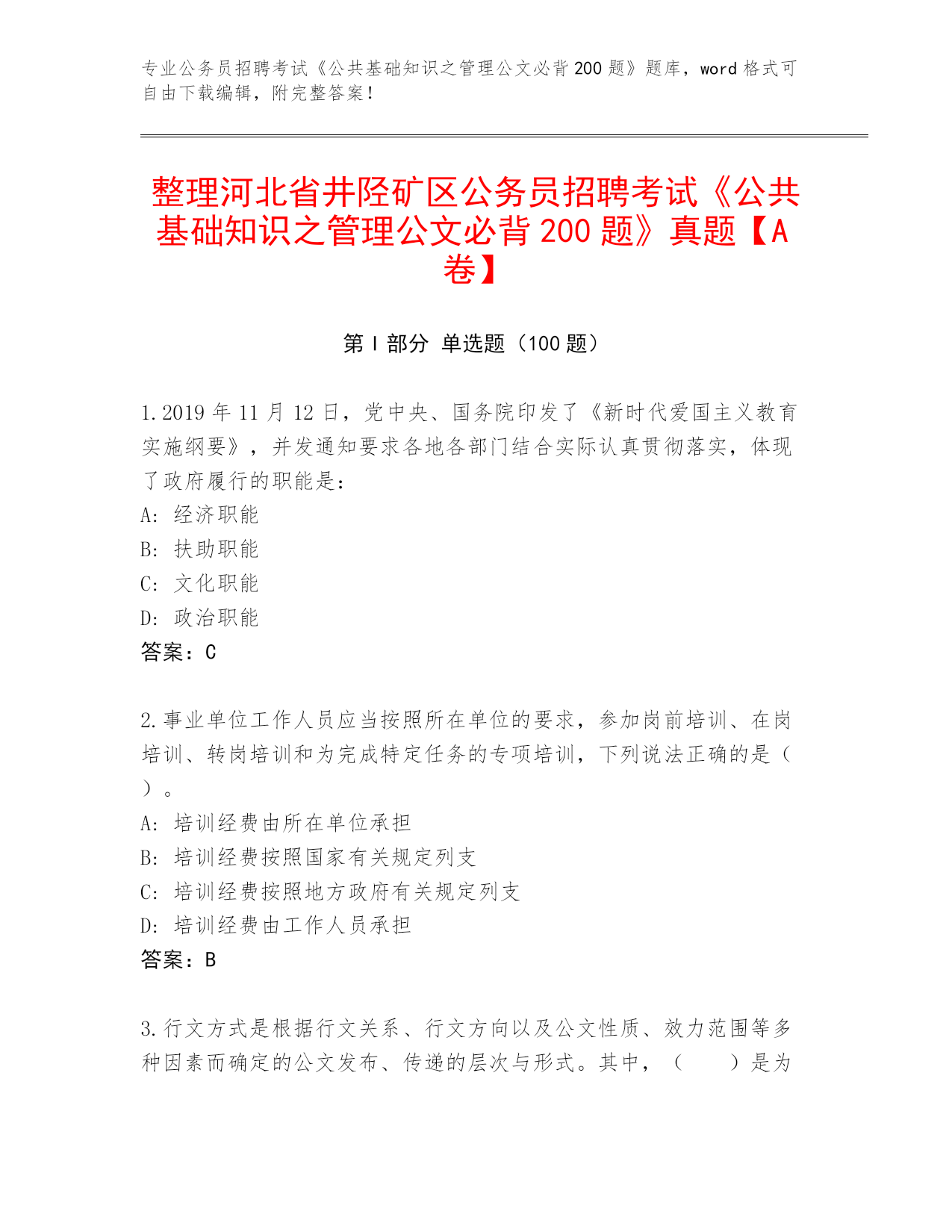 整理河北省井陉矿区公务员招聘考试《公共基础知识之管理公文必背200题》真题【A卷】.docx