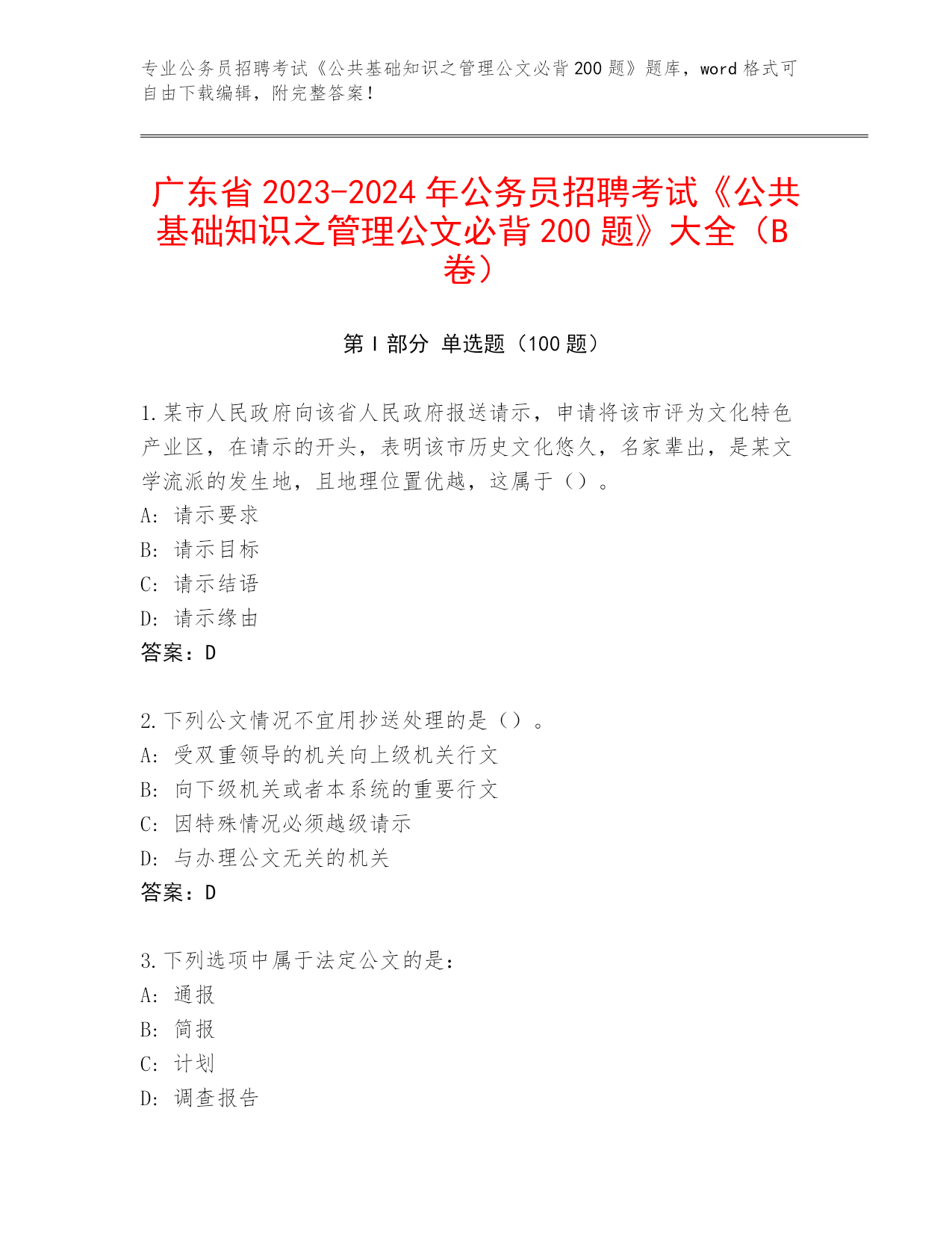 广东省2023-2024年公务员招聘考试《公共基础知识之管理公文必背200题》大全(B卷).docx