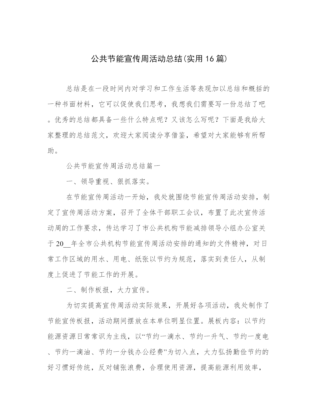公共节能宣传周活动总结(实用16篇).docx