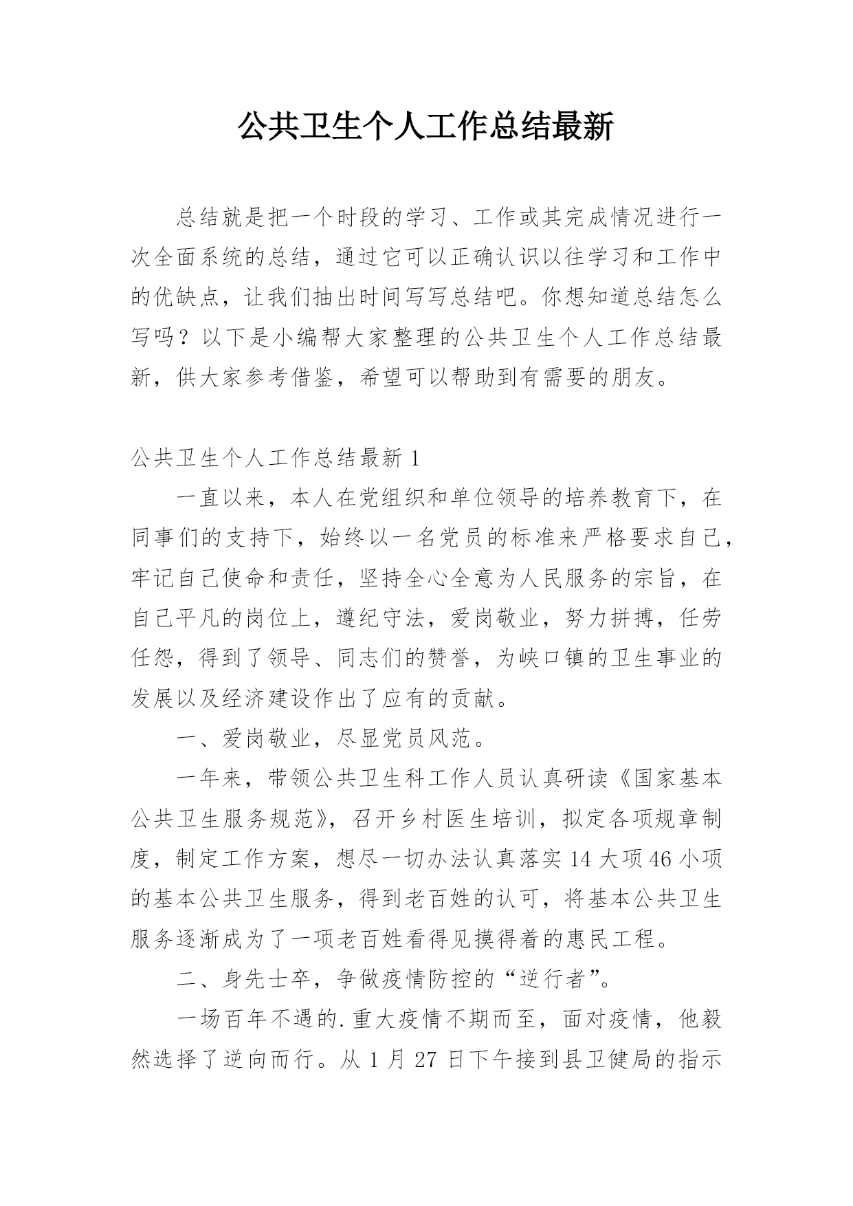 公共卫生个人工作总结最新.docx