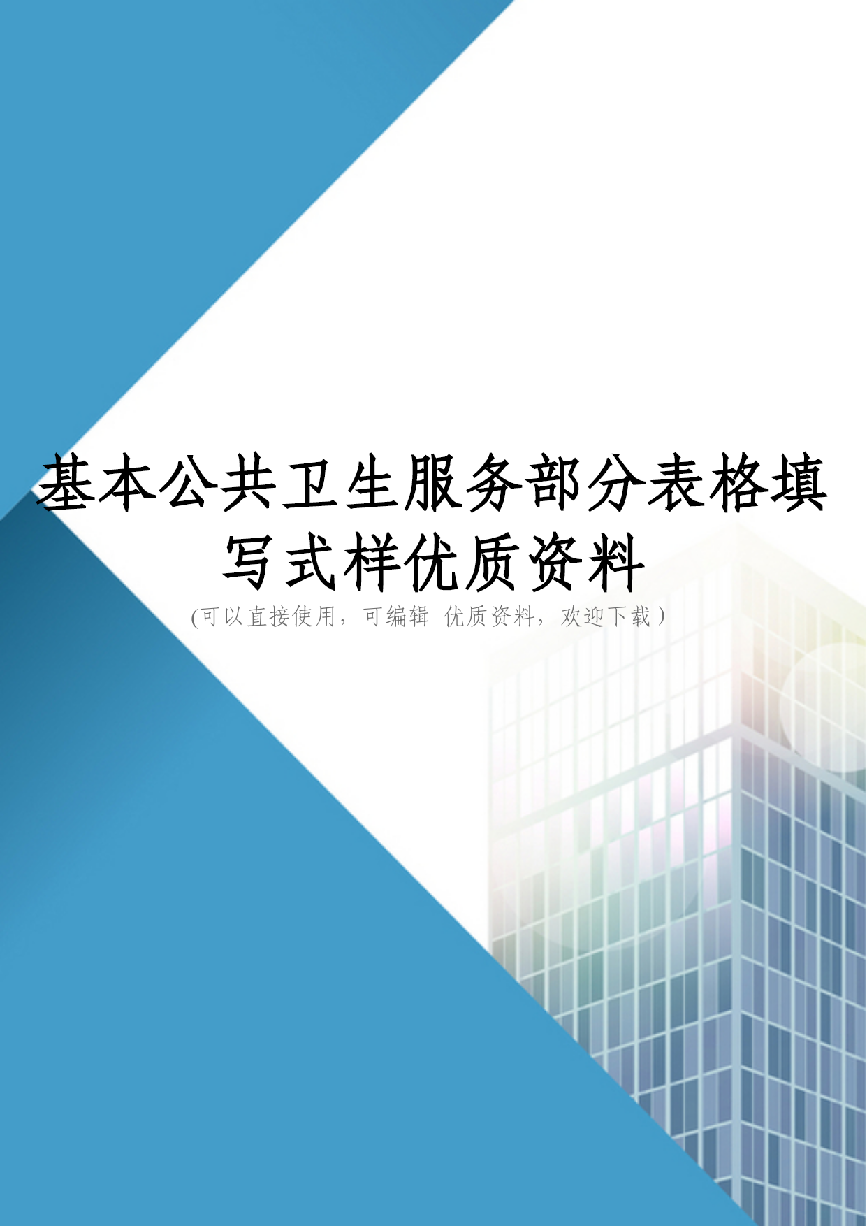 基本公共卫生服务部分表格填写式样优质资料(可以直接使用,可编辑优质资料,欢迎下载)附件3个人基本信息表姓名:张某某编号□□□-□□□□□性别0未知的性别1男2女9未说明的性别EQ\o\ac(□,1)出生日期EQ\o\ac(□,1)EQ\o\ac(□,9)EQ\o\ac(□,5)EQ\o\ac(□,2)EQ\o\ac(□,0)EQ\o\ac(□,9)EQ\o\ac(□,1)EQ\o\ac(□,2)身份证号工作单位无本人132XXXXXXXX联系人姓名李某