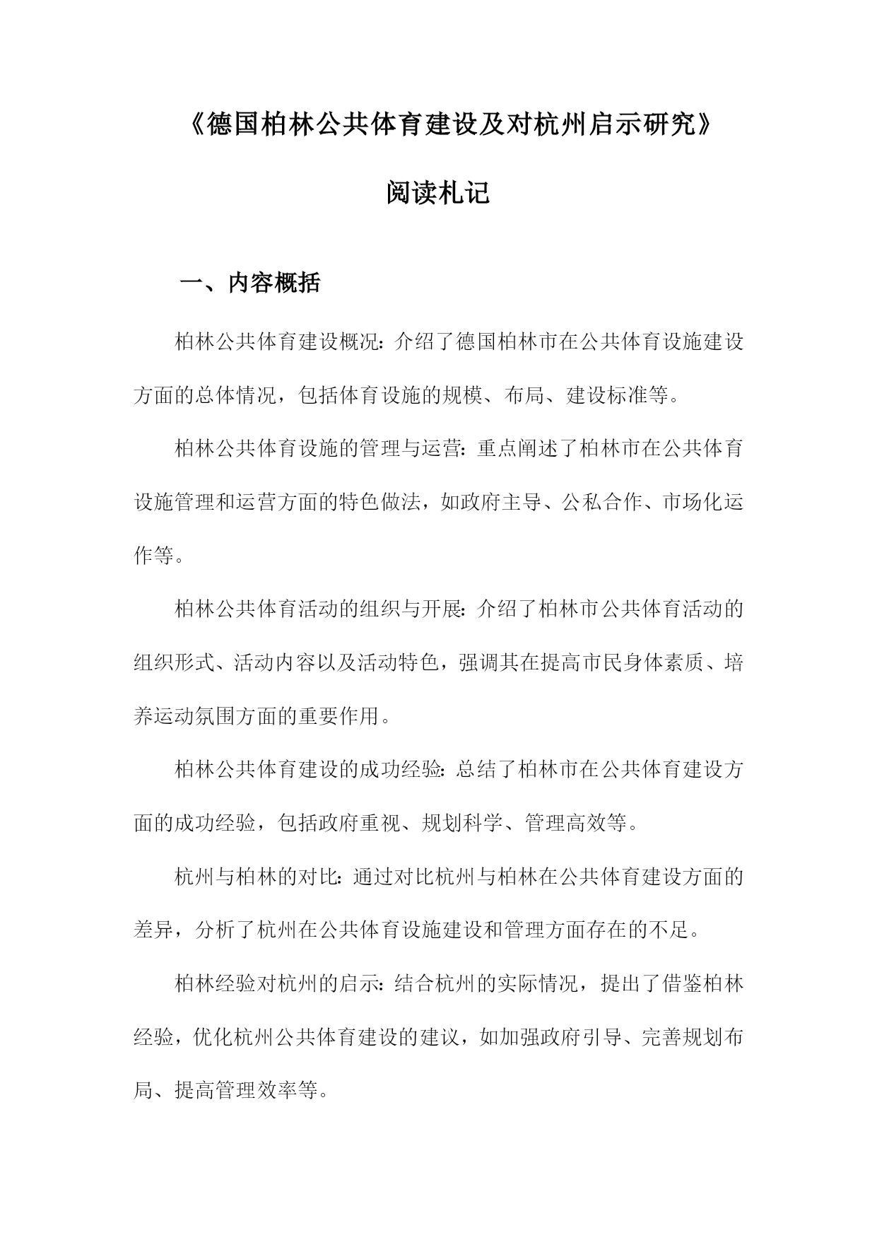 德国柏林公共体育建设及对杭州启示研究阅读札记.docx