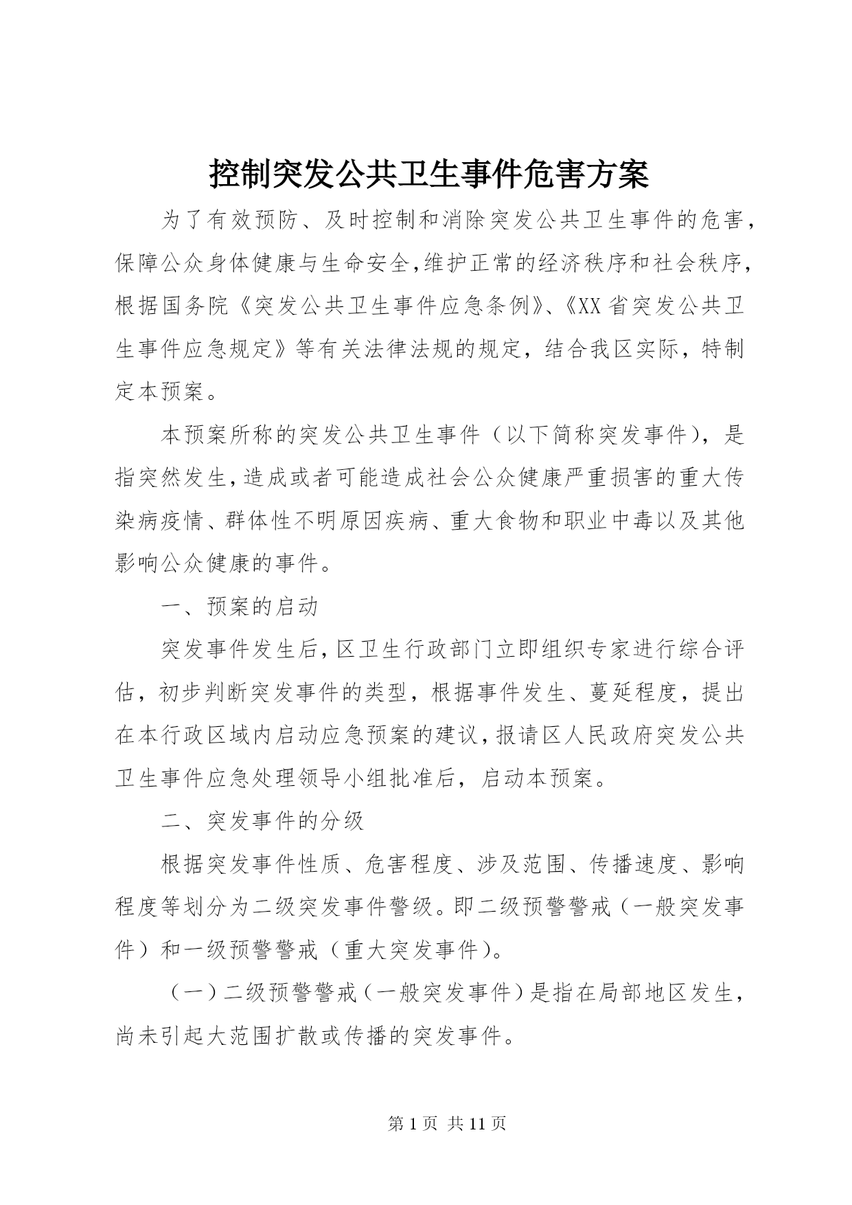 控制突发公共卫生事件危害方案.docx