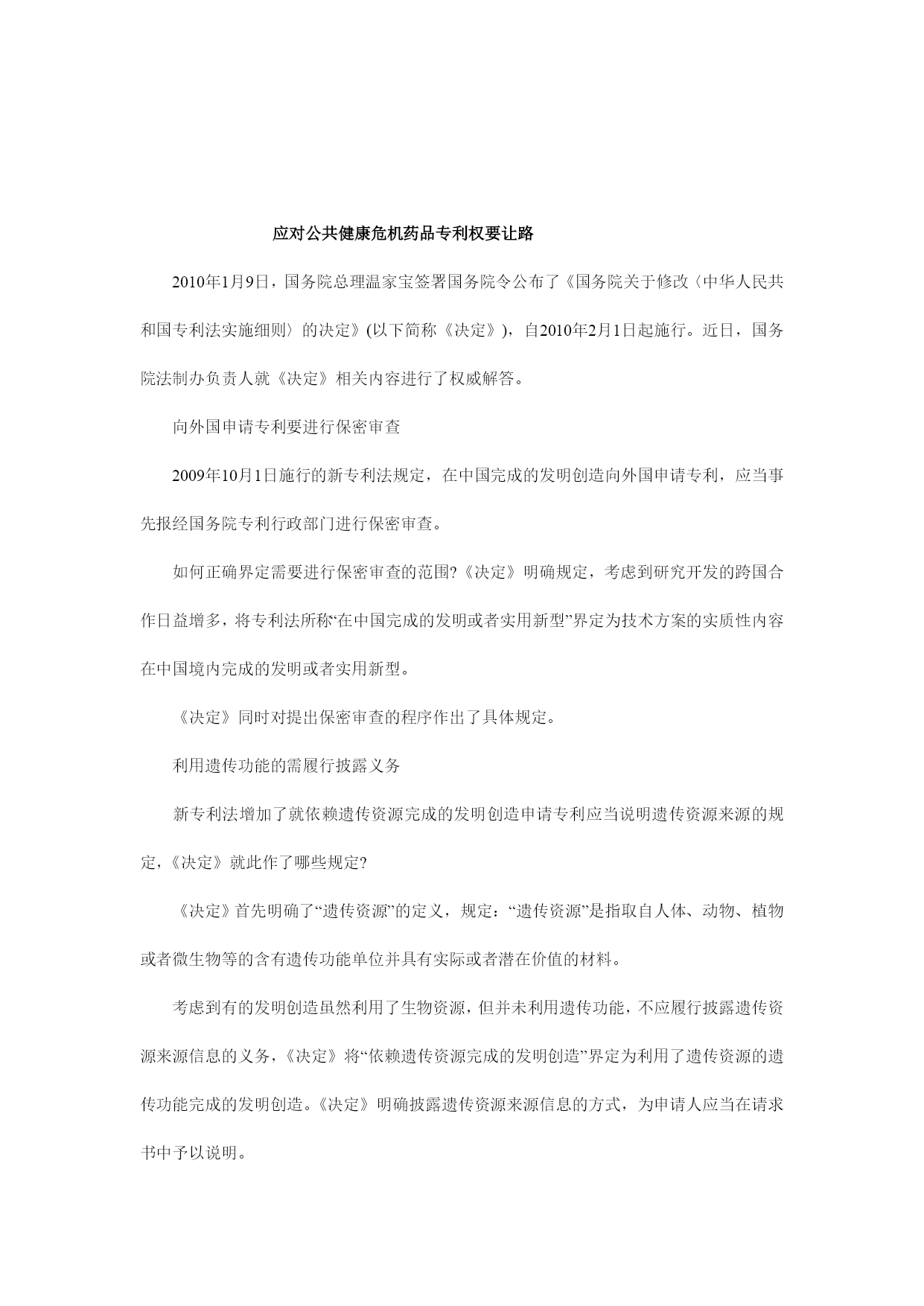 关于应对公共安康危机药品专利官僚让[资料].doc