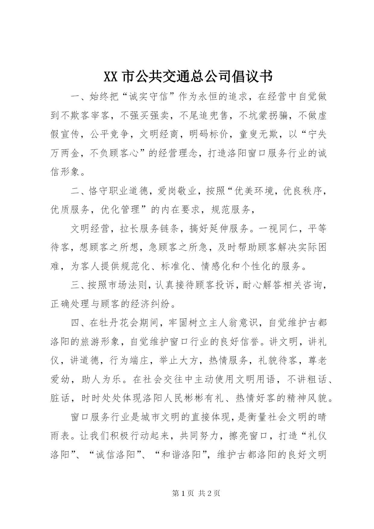 第PAGE\*Arabic\*MERGEFORMAT2页共NUMPAGES\*MERGEFORMAT2页XX市公共交通总公司倡议书一、始终把“诚实守信”作为永恒的追求,在经营中自觉做到不欺客宰客,不强买强卖,不尾追兜售,不坑蒙拐骗,不做虚假宣传,公平竞争,文明经商,明码标价,童叟无欺,以“宁失万两金,不负顾客心”的经营理念,打造洛阳窗口服务行业的诚信形象。二、恪守职业道德,爱岗敬业,按照“优美环境,优良秩序,优质服务,优化管理”的内在要求,规范服务,文明经营,拉长服务链条,搞好延伸服务。一视同