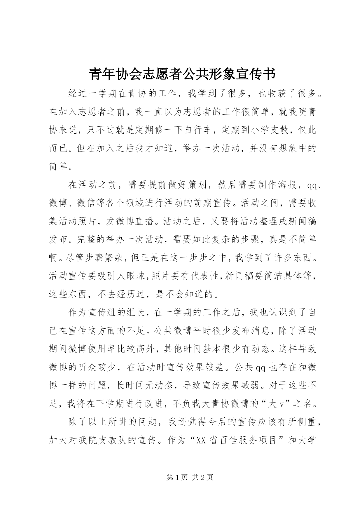 第PAGE\*Arabic\*MERGEFORMAT2页共NUMPAGES\*MERGEFORMAT2页青年协会志愿者公共形象宣传书经过一学期在青协的工作,我学到了很多,也收获了很多。在加入志愿者之前,我一直以为志愿者的工作很简单,就我院青协来说,只不过就是定期修一下自行车,定期到小学支教,仅此而已。但在加入之后我才知道,举办一次活动,并没有想象中的简单。在活动之前,需要提前做好策划,然后需要制作海报,qq、微博、微信等各个领域进行活动的前期宣传。活动之间,需要收集活动照片,发微博直播。活动之