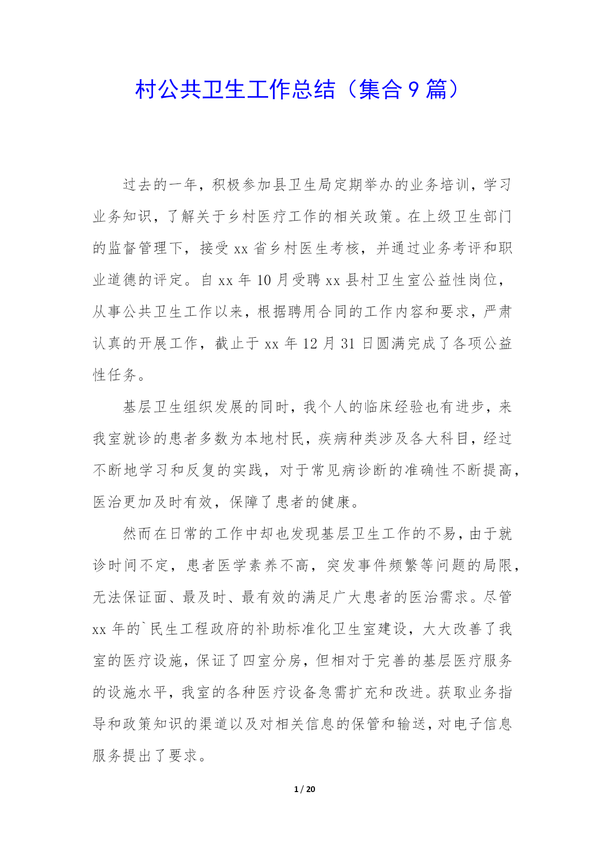 村公共卫生工作总结(集合9篇).docx