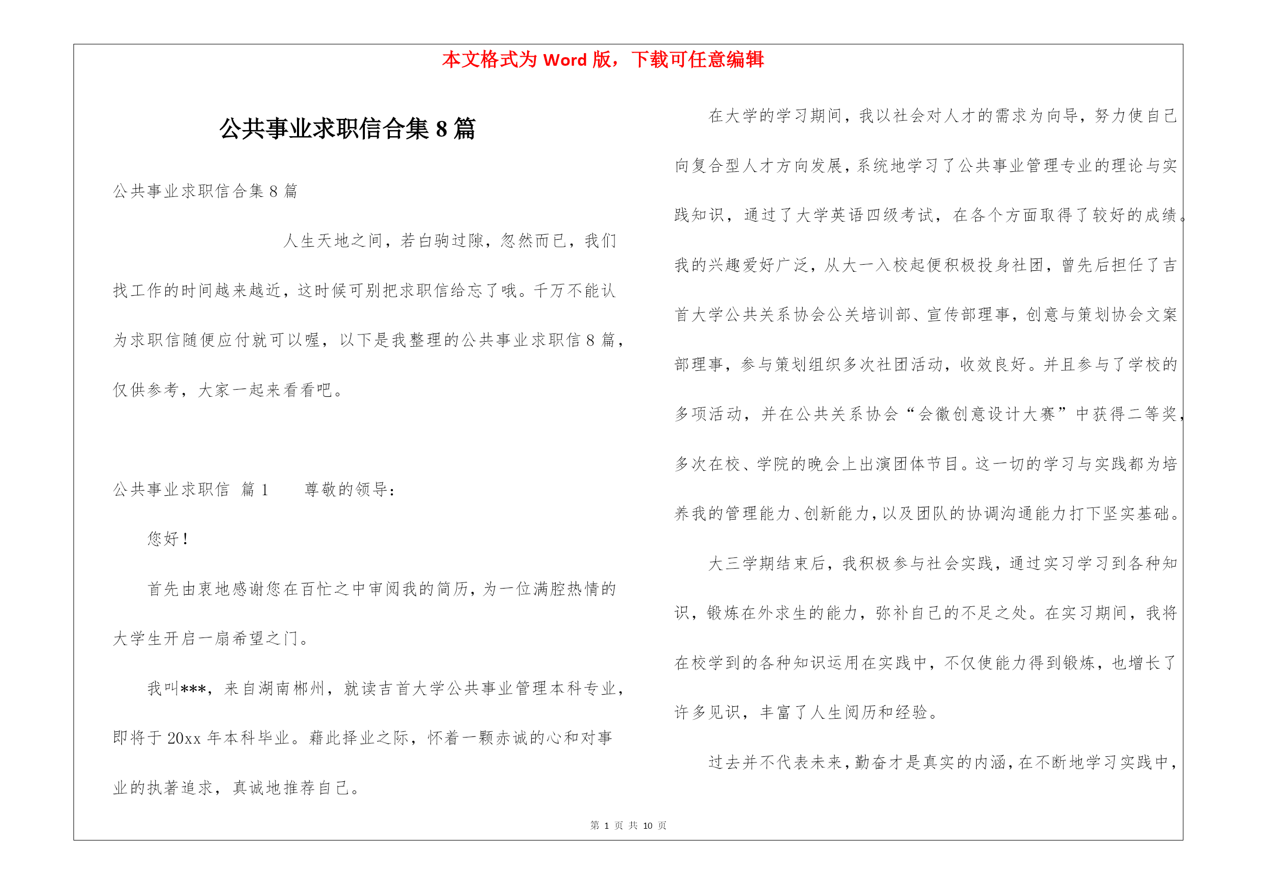 公共事业求职信合集8篇.docx