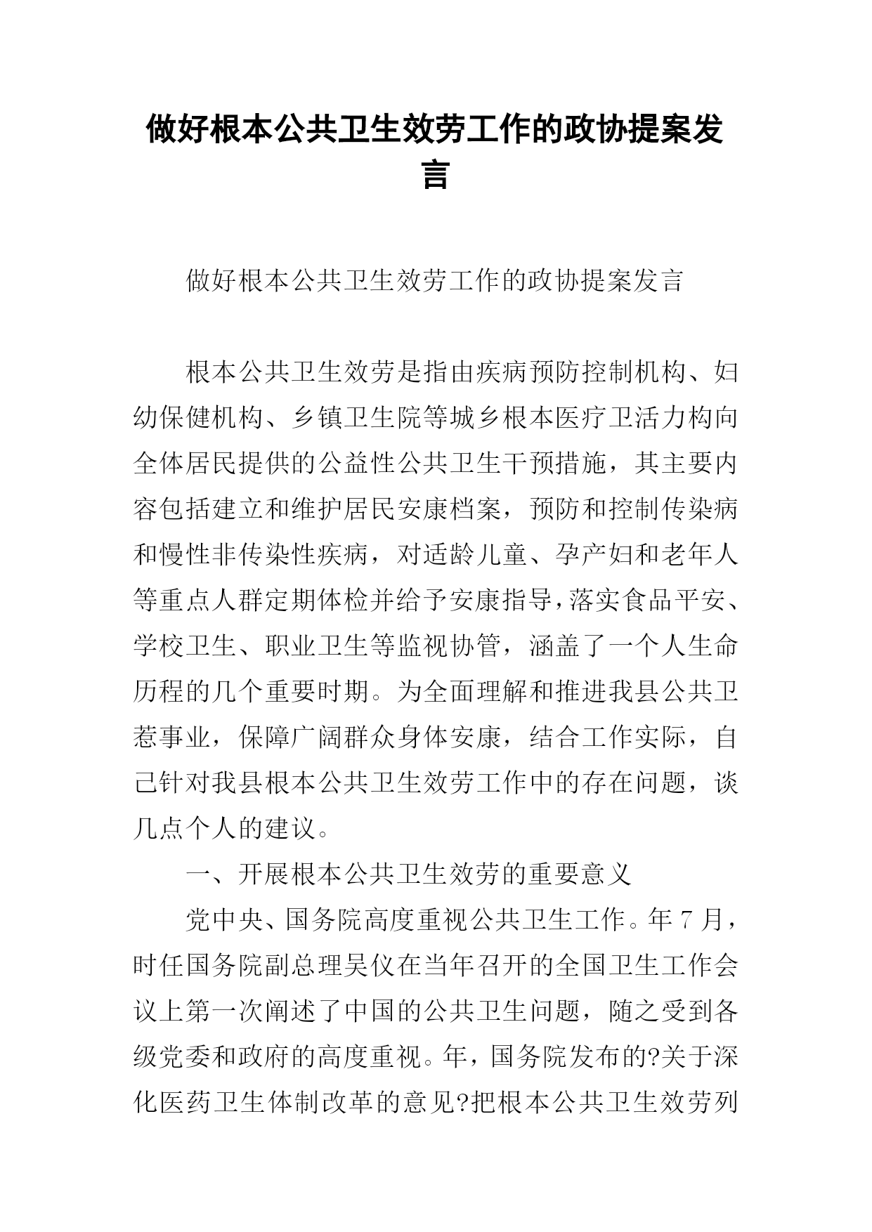 PAGE7/NUMPAGES7做好根本公共卫生效劳工作的政协提案发言做好根本公共卫生效劳工作的政协提案发言根本公共卫生效劳是指由疾病预防控制机构、妇幼保健机构、乡镇卫生院等城乡根本医疗卫活力构向全体居民提供的公益性公共卫生干预措施,其主要内容包括建立和维护居民安康档案,预防和控制传染病和慢性非传染性疾病,对适龄儿童、孕产妇和老年人等重点人群定期体检并给予安康指导,落实食品平安、学校卫生、职业卫生等监视协管,涵盖了一个人生命历程的几个重要时期。为全面理解和推进我县公共卫惹事业,保障广阔群众身体安