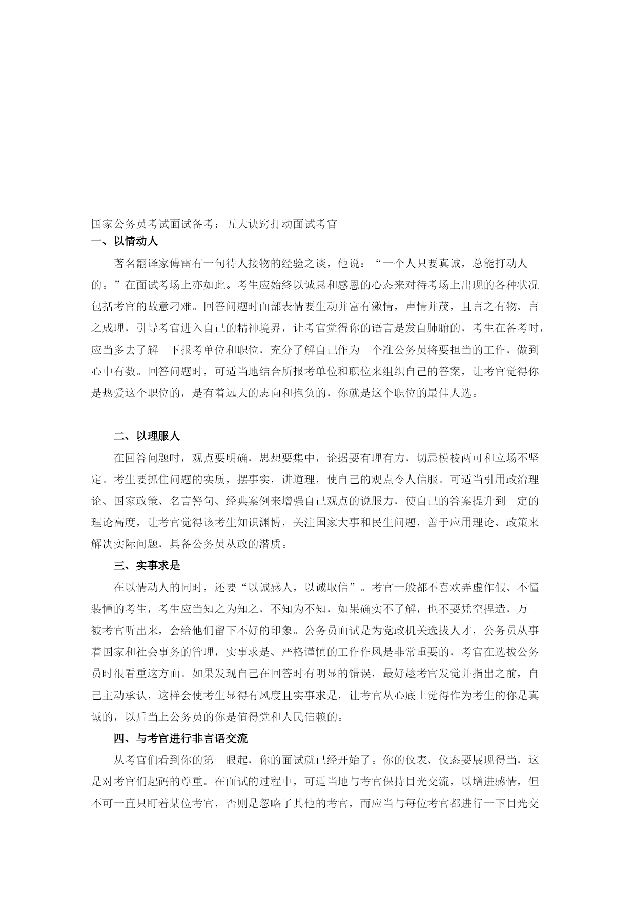 国家公务员考试面试备考:五大诀窍打动面(精品).doc