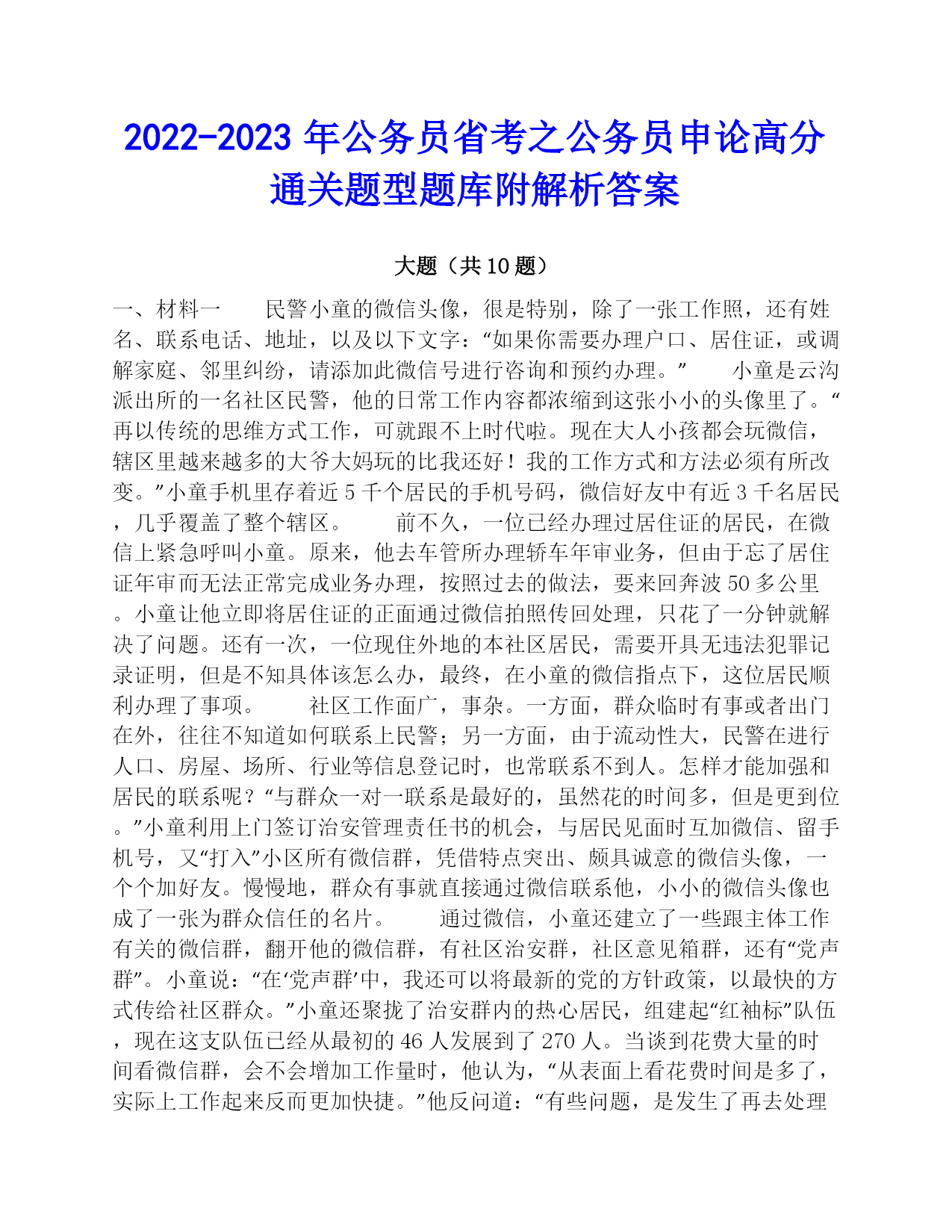 2022-2023年公务员省考之公务员申论高分通关题型题库附解析答案.docx