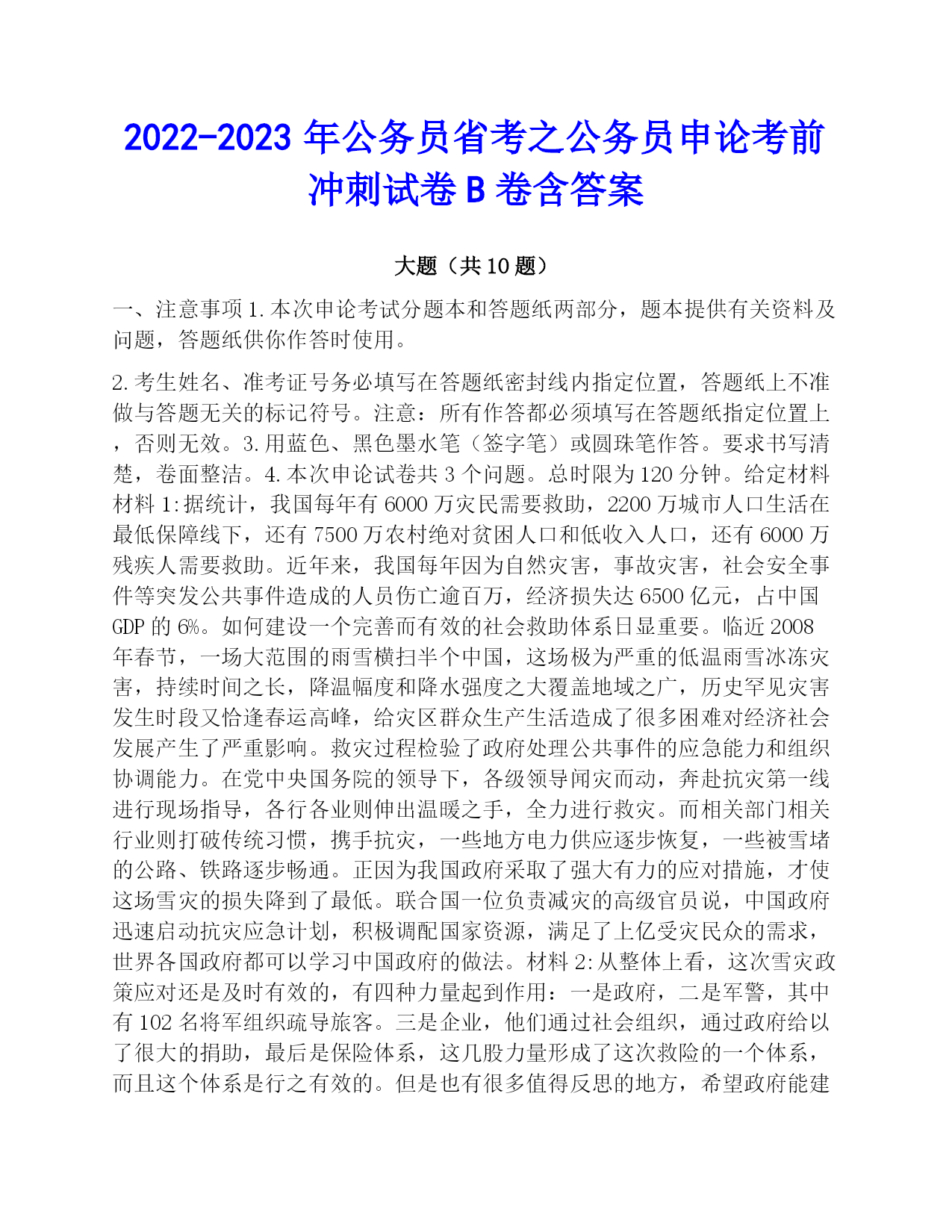 2022-2023年公务员省考之公务员申论考前冲刺试卷B卷含答案.docx