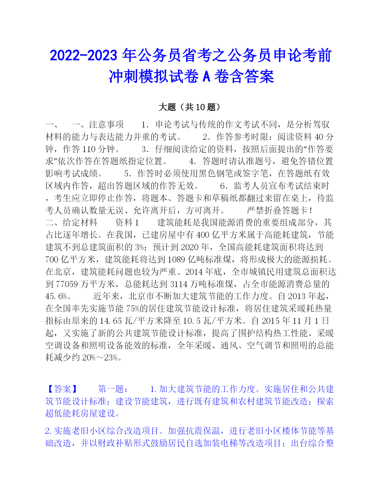 2022-2023年公务员省考之公务员申论考前冲刺模拟试卷A卷含答案.docx