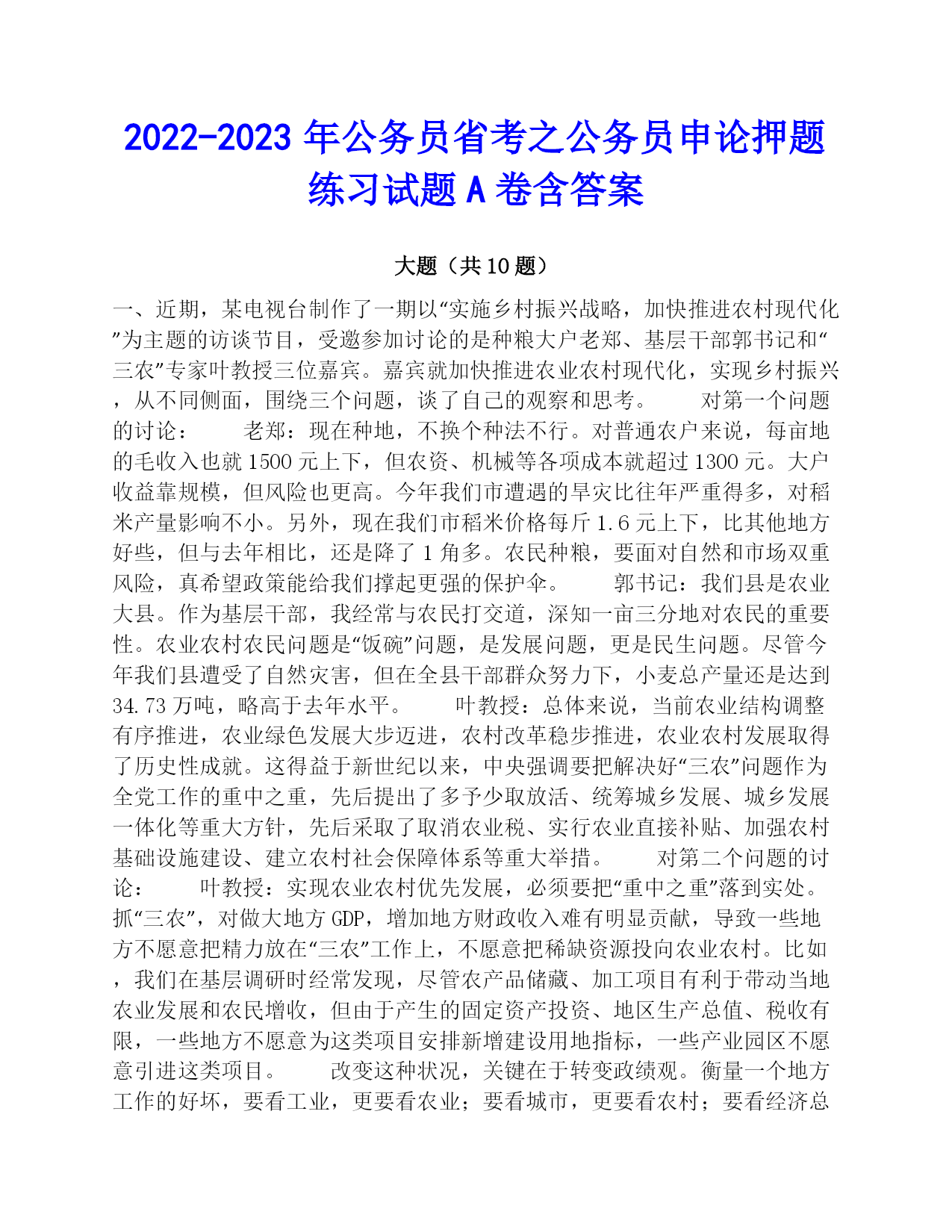 2022-2023年公务员省考之公务员申论押题练习试题A卷含答案.docx