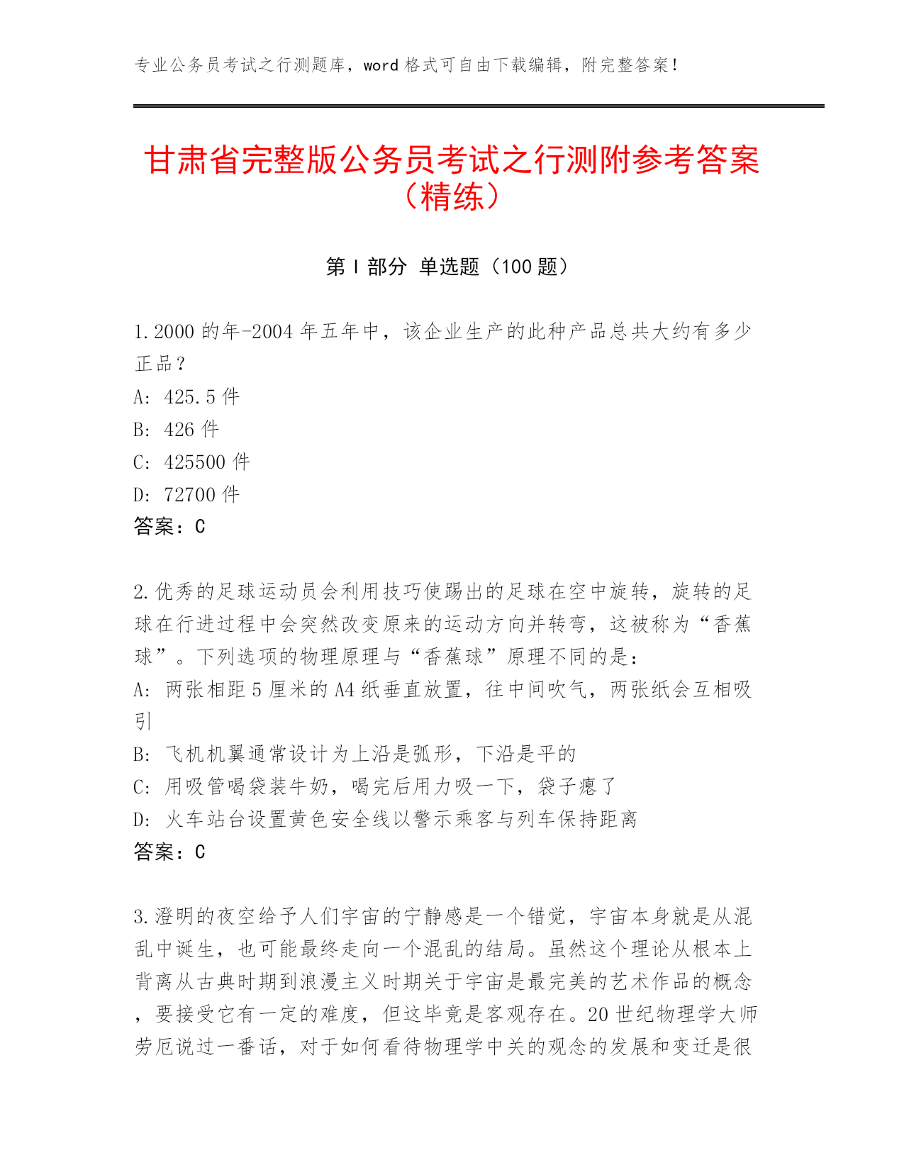 甘肃省完整版公务员考试之行测附参考答案(精练).docx
