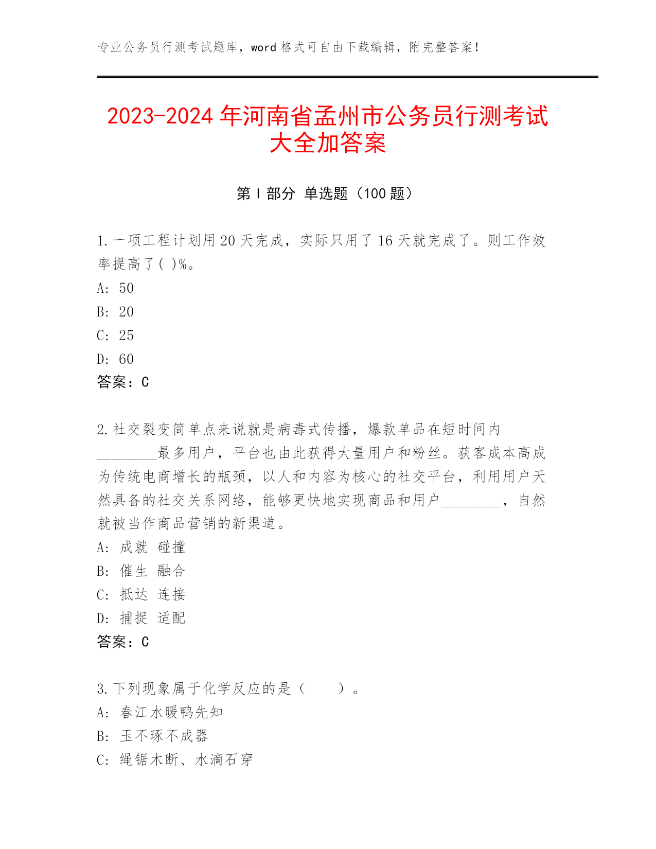 2023-2024年河南省孟州市公务员行测考试大全加答案.docx
