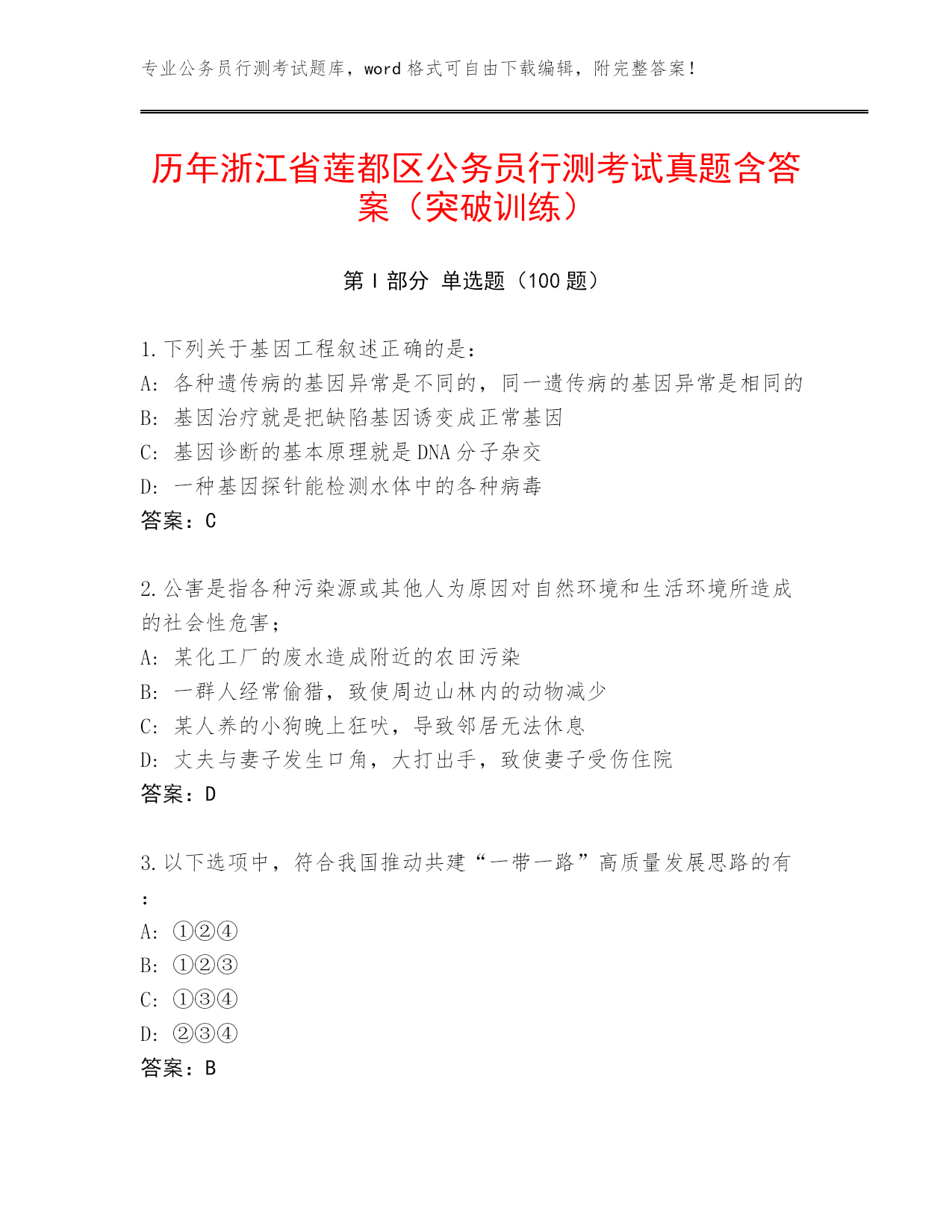历年浙江省莲都区公务员行测考试真题含答案(突破训练).docx