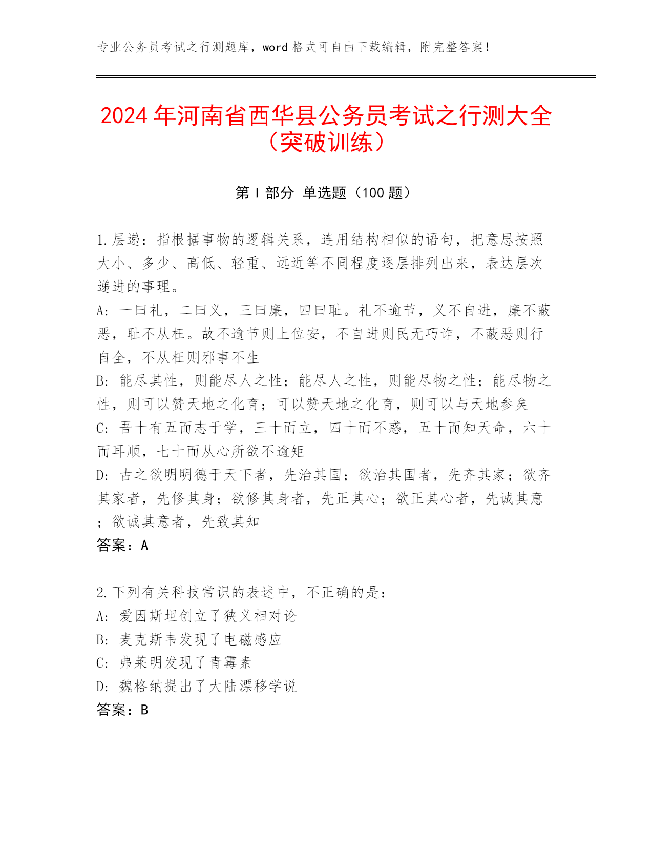 2024年河南省西华县公务员考试之行测大全(突破训练).docx