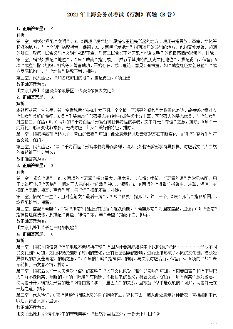 2021年上海公务员考试《行测》真题(B卷)参考答案及解析.pdf