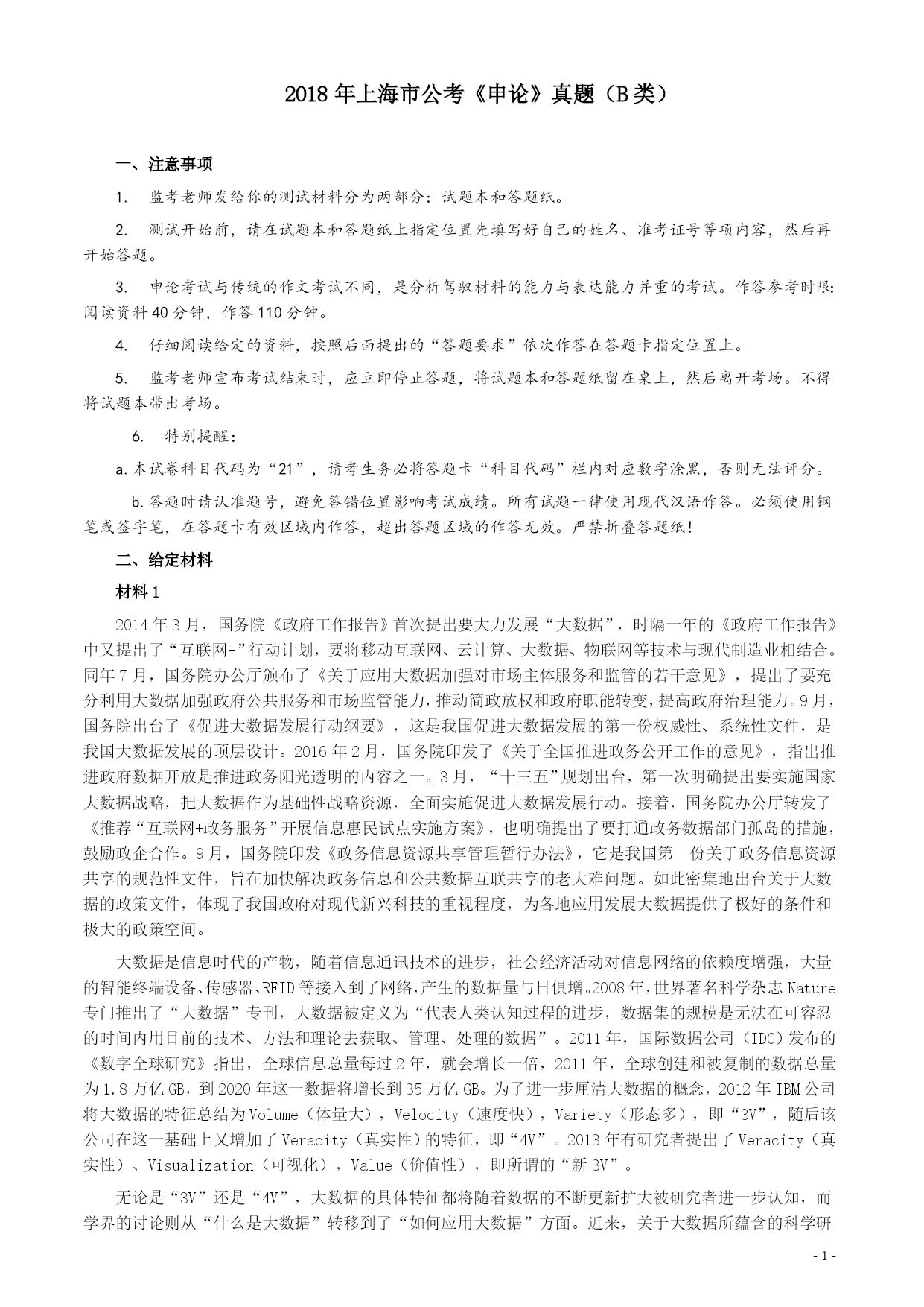 2018年上海市公务员考试《申论》真题(B类)及参考答案.doc