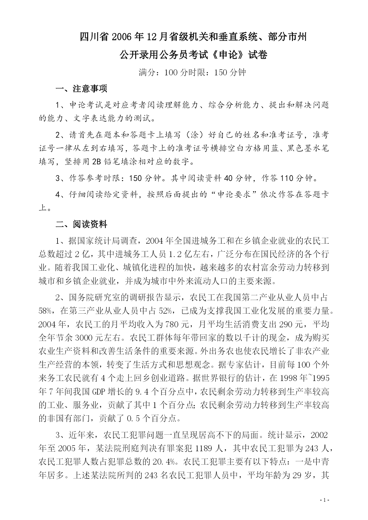 2006年四川省公务员考试《申论》真题及参考答案.docx