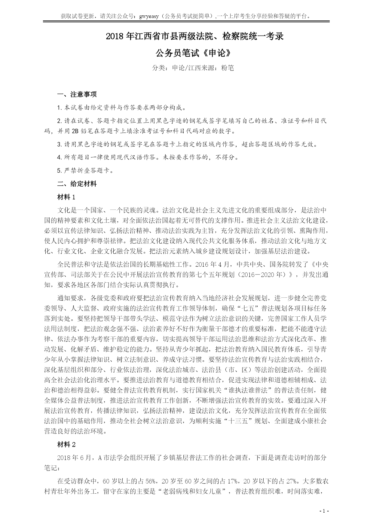 2018年江西录用公务员考试《申论》真题卷(法院、检察院)及答案.doc