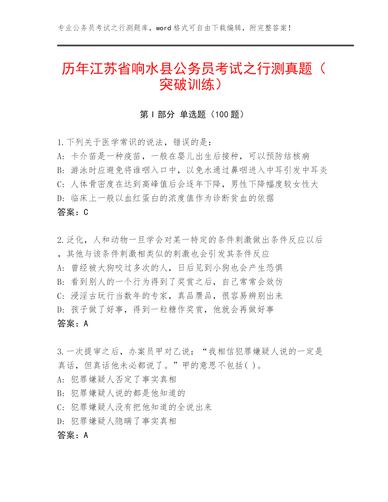 历年江苏省响水县公务员考试之行测真题(突破训练).docx