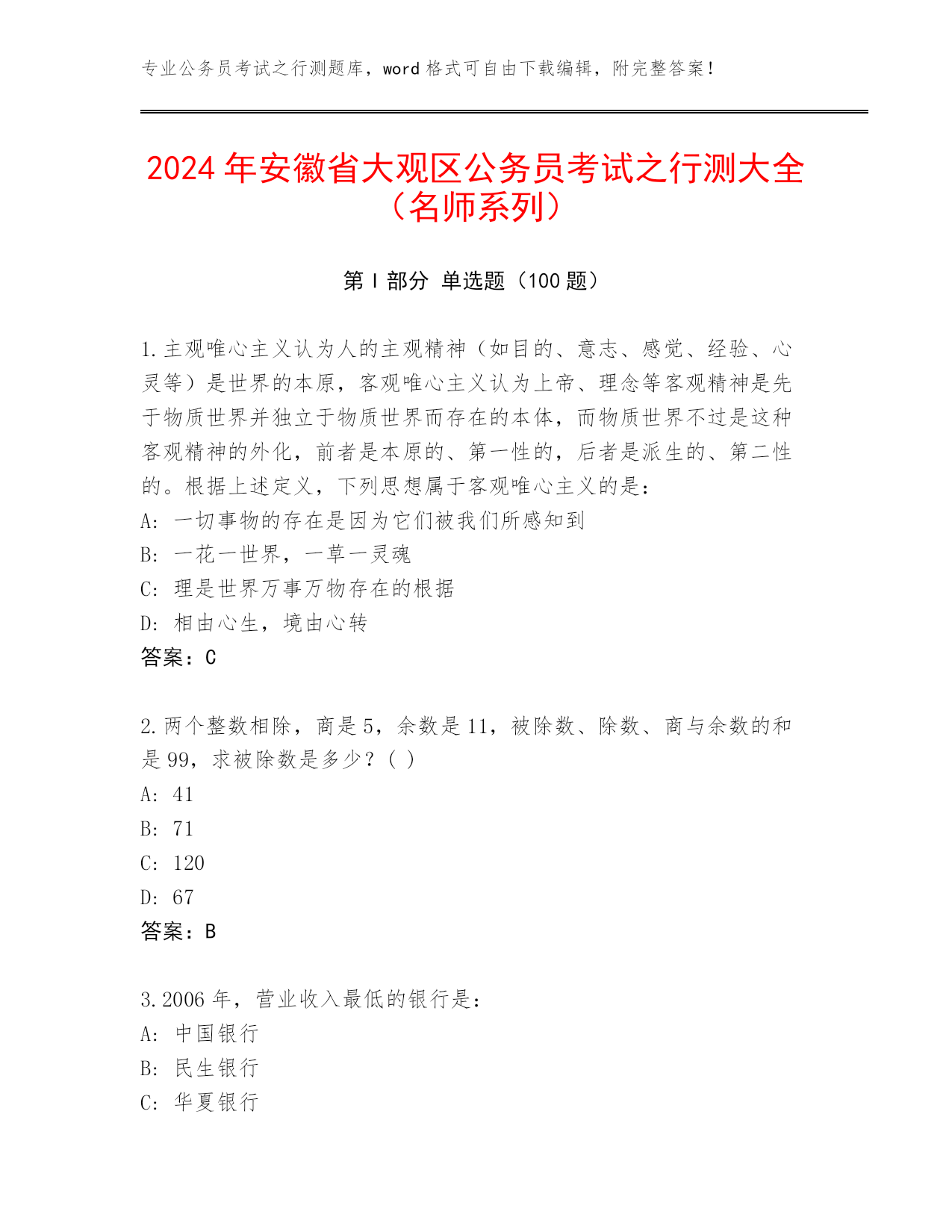 2024年安徽省大观区公务员考试之行测大全(名师系列).docx
