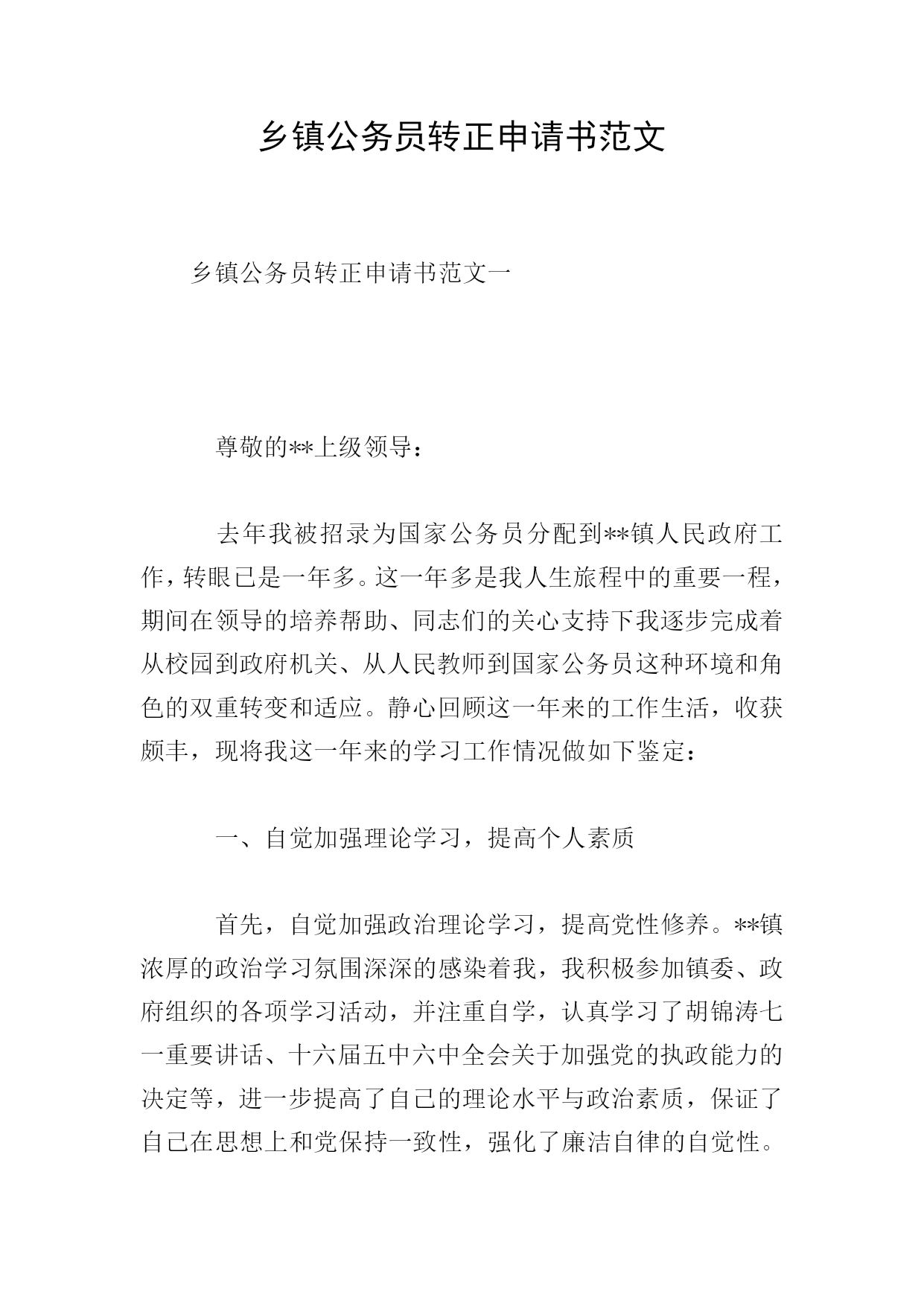 乡镇公务员转正申请书范文.doc