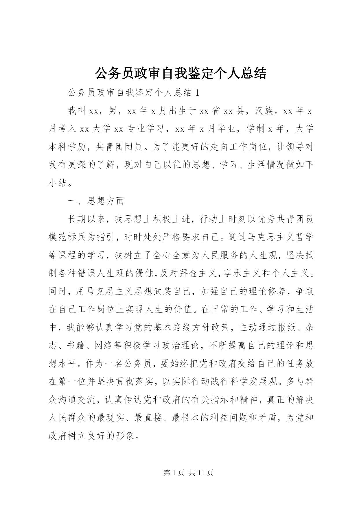 公务员政审自我鉴定个人总结.docx